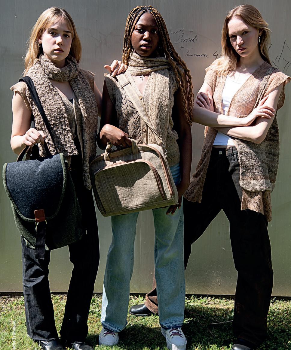 oe, Shawina, Laura und Katharina. So heißen die jungen, angehenden Designerinnen der Modeschule Graz, die uns zeigen, wie aus dem „Mauerblümchen Brennnessel“ am Laufsteg coole und lässige Mode wird. Noch tragen sie nicht ihre eigenen Kreationen, sondern alles handgemacht aus einer Himalaya-Region in Nepal: Westen, Jäckchen, Schals, Schirmkappe, Laptop- und Umhängetasche. Nur der blaue Rucksack kommt aus Österreich. Ihr Kommentar: „Cool und angenehm zu tragen und passend zu jedem Anlass.“ Das, was die jungen Models hier präsentieren, hat nicht nur in Nepal lange Tradition. Seit der Antike waren die Nesselfasern einer der billigsten Naturstoffe, überall leicht zu bekommen. Hergestellt wurden grobe Gewebe, wie Segel und Taue für die Schifffahrt. Die Faser ist reißfest und extrem wasserbeständig, hat einen schönen Glanz, ist leicht färbbar, elastisch und atmungsaktiv.
