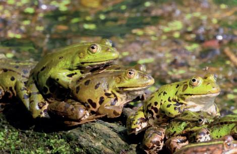 ÑDrei Teichfrˆsche hochì Der Teichfrosch ist ein Hybrid oder Bastard aus dem Seefrosch und dem Kleinen Wasserfrosch