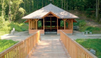 Im Innenbereich der Gradieranlage kann man sitzen und sich entspannen. Es besteht auch die Mˆglichkeit f¸r Spiele. Auflerhalb gibtís Wassertreten mit Kneipp, ein Armbad nach Kneipp und man kann auch im Bach ñ der Glantschn ñ barfufl im Wasser gehen. Die Gradieranlage ist von April bis Oktober geöffnet und der vorläufige ÑSchluss und Hˆhepunktì f¸r den Gesunden Freizeitpark.
