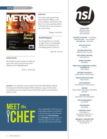 PUBLICATIONS Bellingham Alive North Sound Life North End Metro PRESIDENT/PUBLISHER Lisa Karlberg EDITOR IN CHIEF Frances Badgett ART DIRECTOR Kelly Slater ASSOCIATE EDITOR Kaity Teer