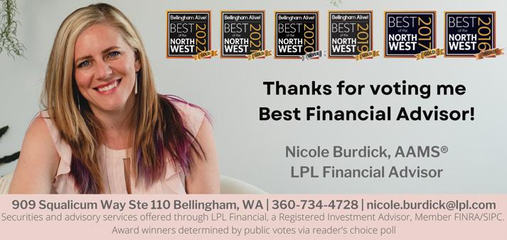 October 2022 133 CHOICE BESTOFTHE NORTHWEST2022BEST TO 2022 366 WINNERS ANYTIME. BELLINGHAMALIVE.COM t s Celebrate! READER’S CHOICE 366 ANYWHERE. READER’S CHOICE W LeCelebrate! 366 WINNE