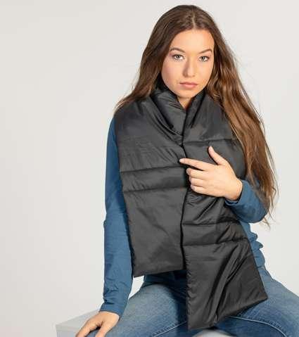Cozy scarf with durable water-repellent finish and storage pocket. Foulard isolé enveloppant avec déperlant durable et pochette de rangement.