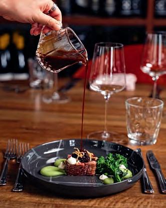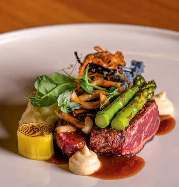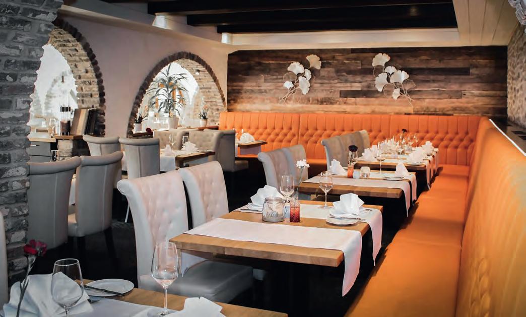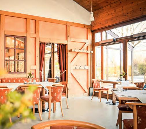 und internationalen Akzenten. Frische, hochwertige Produkte, wenn möglich aus der Region, sind uns sehr wichtig. Bei uns wird alles selbst gemacht – Soße, Pasta, Klöße, Kuchen – Convenience-Produkte sind tabu“, erklärt Stefan Gogic. Zu den traditionellen Gerichten zählt der Rheinische Sauerbraten mit Printensoße, Spätburgunderkraut und Semmelknödel – göttlich lecker! Die Steaks stammen vom argentinischen Black-Angus-Rind, Forellen aus heimischen Gewässern, Wild aus den umliegenden Wäldern. Liebhaber feiner Genüsse sind bei Familie Gogic also in den allerbesten Händen, oenophile Gäste ebenfalls. Wein ist hier Chefsache: „In unserem Keller lagern europäische Weine, aber auch Tropfen aus Nordamerika.“ Das Vichter Landhaus – ein Domizil, in dem man gern längere Zeit verweilt –dazu tragen auch die 32 gemütlichen Wohlfühlzimmer bei. ■