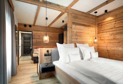 wege machen den Weg zum Ziel. Es bieten sich schier endlose Möglichkeiten, die abwechslungsreiche Bergwelt zu erleben. Beim E-Biken geht es über Stock und Stein. Über 350 Kilometer Wege und zahlreiche Tourenvarianten machen die Schönheit der alpinen Bergwelt erlebbar. Arpuria – hier verschmelzen Exklusivität und familiäre Wärme zu etwas Besonderem. Hier geht es ums Verwöhnen, und die Zero-Waste-Initiative im Haus zeugt von einem großen Verantwortungsbewusstsein der Gastgeber. Digitale Lösungen, die einfach in ihrer Handhabung sind, und unverpackte Lebensmittel am Büfett unterstreichen, dass hier Gastfreundschaft zeitgemäß und nachhaltig gelebt wird. 100 Prozent des Stroms im Haus kommen aus der örtlichen Wasserkraft. ■