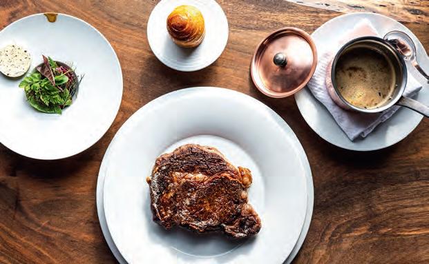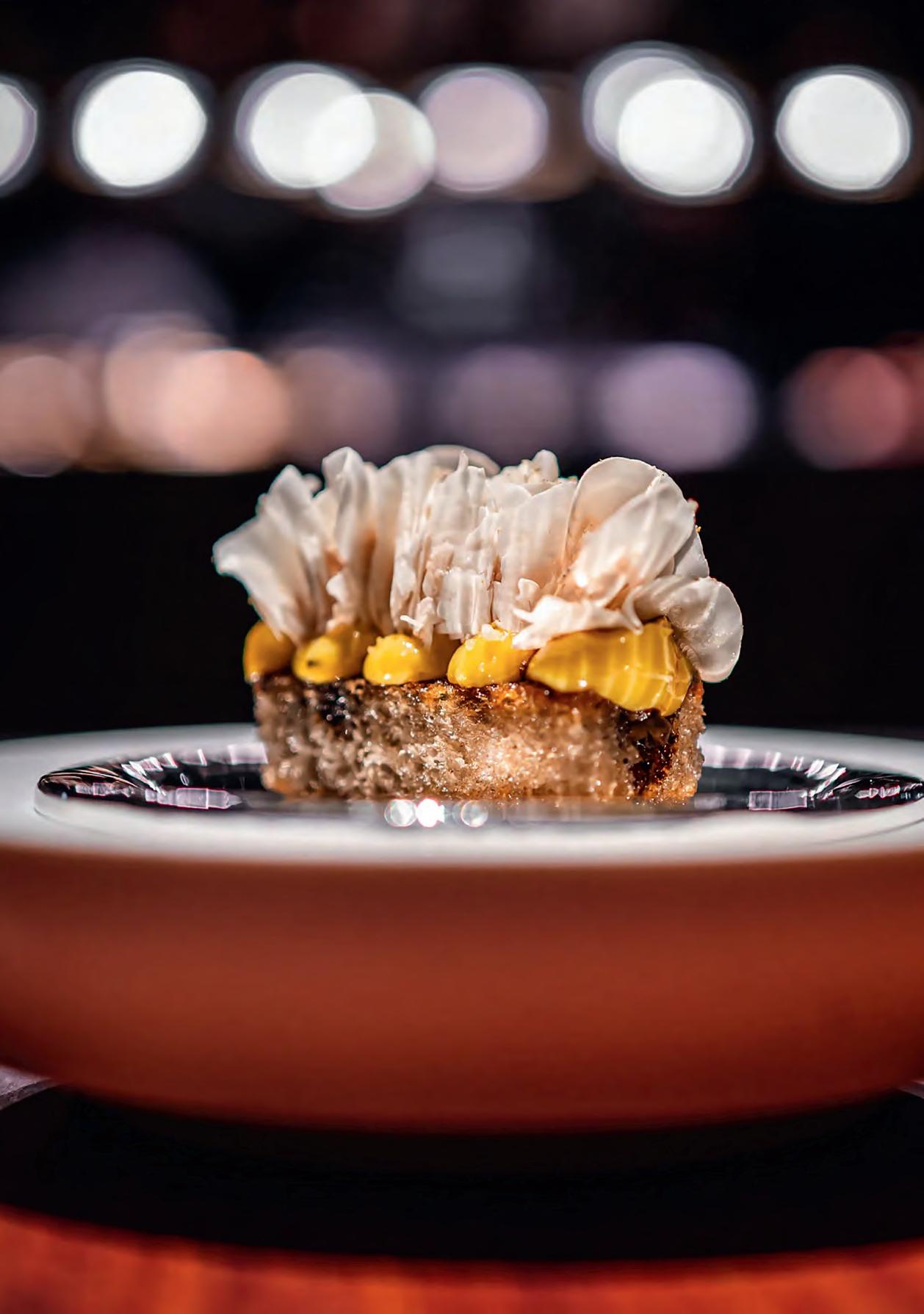 Eine Reise zu den Aromen des Meeres eröffnet sich bei Jakobsmuschel mit Grapefruit und Ceviche oder Kabeljau mit Lagrima-Erbsen und schwarzem Trüffel. Alles, was die Schätze der Natur zu bieten haben, erschließt sich Liebhabern feiner Genüsse bei Wildpilzen, dazu schwarzer Knoblauch und Camouflage. Ob Aubergine mit Joghurt und Piri-Piri oder Polenta-Gnocchi mit Mais und Kapern – ein Gang schmeckt so köstlich wie der andere. Passend dazu rinnen formidable Tropfen aus Frankreich oder Italien ins Glas. ■