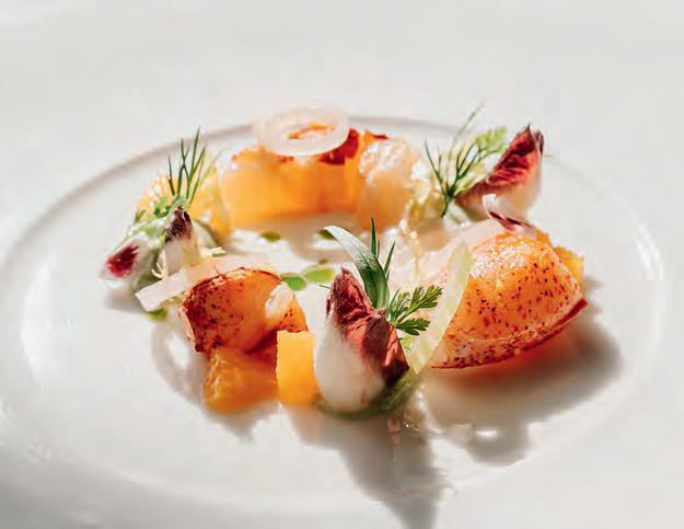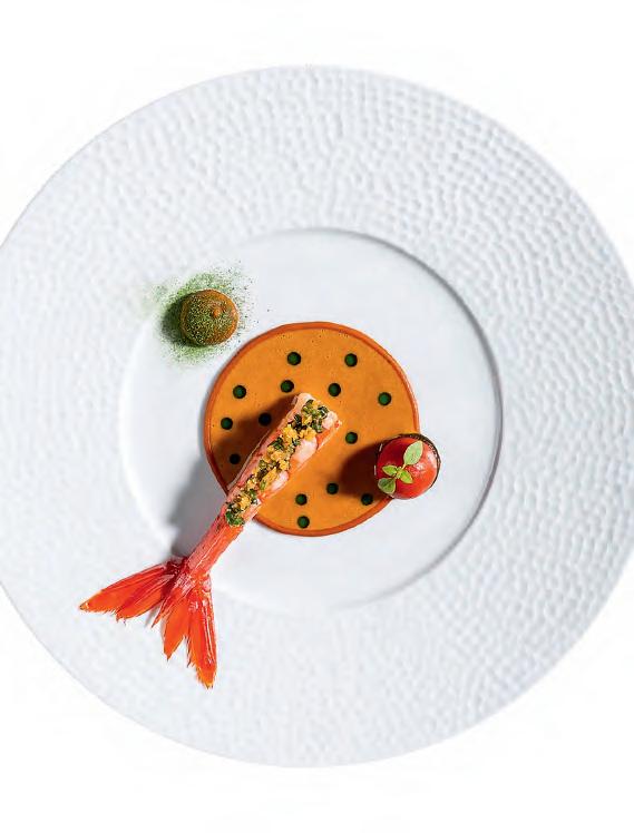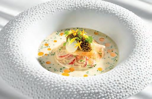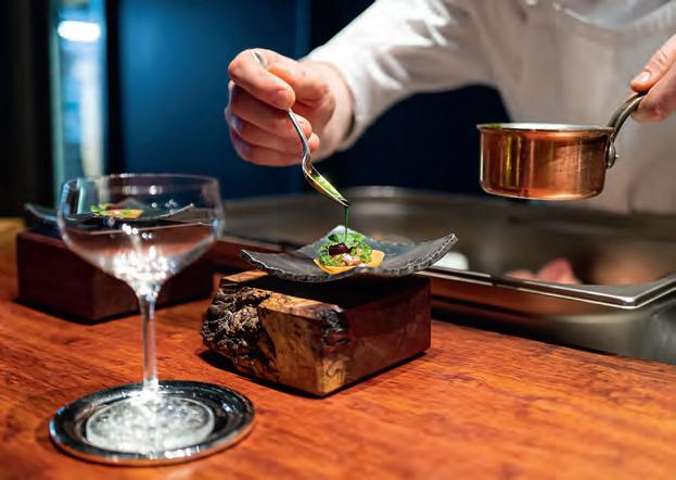 Bach, in Baiersbronn bei Claus-Peter Lumpp im „Hotel Bareiss“ (drei MichelinSterne) und in der „Traube Tonbach“ (drei Michelin-Sterne, Harald Wohlfahrt). Christoph Rüffer weiß genau, was seine internationalen Gäste von einem Besuch im Restaurant Haerlin erwarten. Ihm gelingt es, bei seinen Gerichten mit faszinierend pointierten Aromen zusätzliche Glanzlichter zu setzen und damit die Erwartungen selbst verwöhntester Gourmets immer wieder aufs Neue zu übertreffen. Alle kulinarischen Meisterwerke leben natürlich von der persönlichen Note des Haerlin-Teams – so ist es neben Christoph Rüffer auch Souschef Tobias Günther, dessen Handschrift die Kulinarik prägt. Er hat sich wie Rüffer einer modernen, weltoffenen Küche mit hochwertigsten Produkten verschrieben, die er kontinuierlich weiterentwickelt. Mit dem Titel „Sous Chef des Jahres 2018“ zeigt Tobias Günther, dass im Restaurant Haerlin zwei Dinge ganz entscheidend sind: erstklassiges Essen und ein erstklassiges Team, zu dem auch Restaurantleiter Marius Jürke zählt. Doch damit nicht genug. Inmitten des imposanten KüchenEventbereichs können bis zu acht Gäste am Chef’s Table einen kulinarischen Abend der Extraklasse erleben. Bei einem Champagneraperitif oder einem Gourmetdinner blicken Feinschmecker Christoph Rüffer und seinem Team bei der Arbeit über die Schulter.