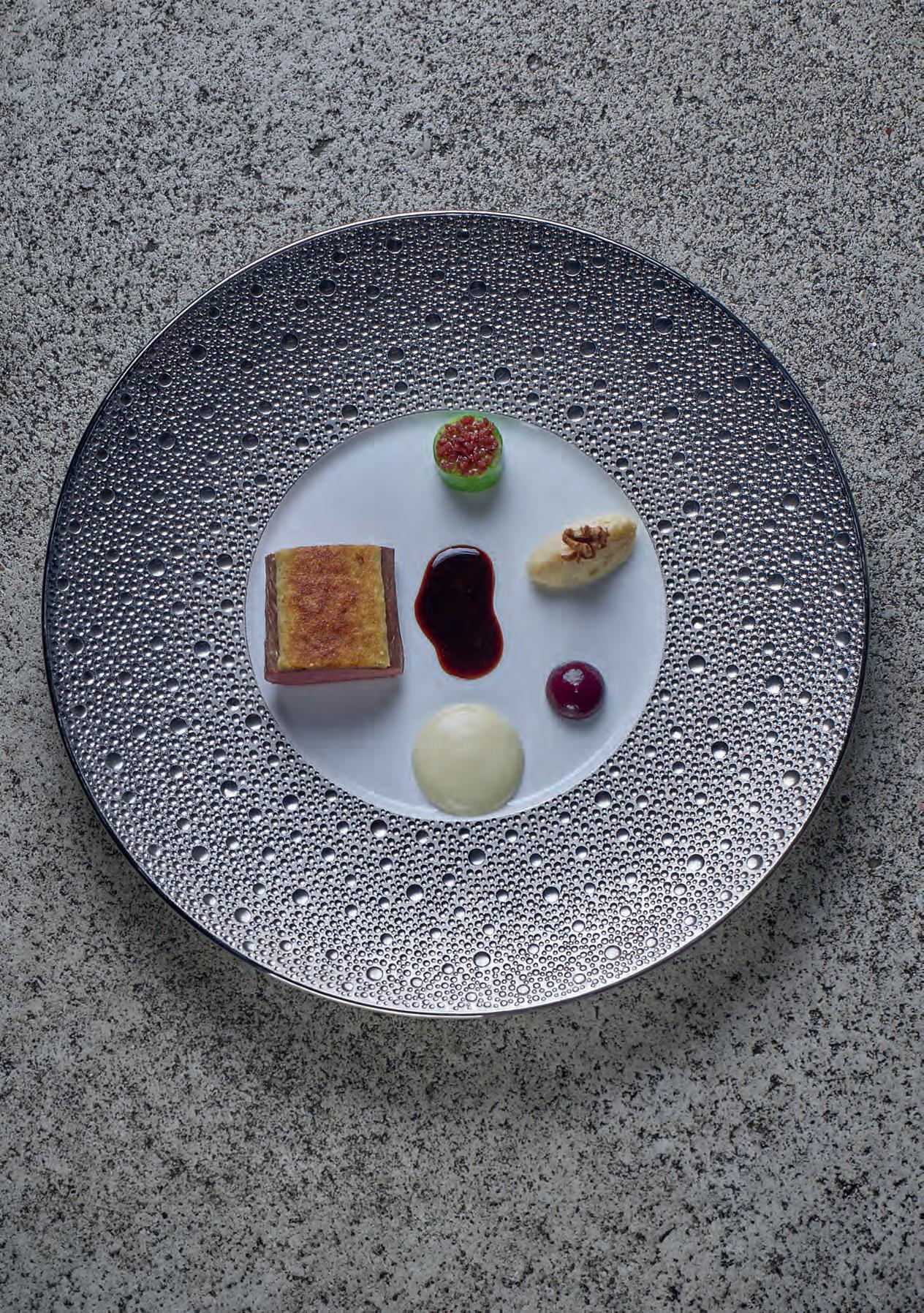 Kevin Fehlings Markenzeichen ist eine avantgardistische, präzise kombinierte Haut Cuisine aus klassischen Rezepten mit exotischen Zutaten und Aromen. Wie kaum ein anderer verbindet der Sternekoch – selbst ein großer Liebhaber der japanischen Küche – Moderne und Tradition sensationell gut zu einer perfekten Symbiose und inspiriert dabei seine Gäste immer wieder zu einer kulinarischen Reise rund um den Globus. Werfen wir nun einen Blick auf einige Komponenten seiner Menüs. Den Auftakt macht „Das Tor zur Welt“ u. a. mit dem Hummercocktail „Martini“. Dann verführt Hamachi mit grünen Aromen –Apfel, Staudensellerie, pochierte Auster und Kaviar. Gänseleber und Kaisergranat Tom Yum Goong – Ananas, Tamarinde und Kokosnuss – sorgen für eine weitere Geschmacksexplosion am Gaumen. Fischliebhaber genießen Lachs von den Färöerinseln „Unagi“. Eine perfekte Symbiose gehen Rehrücken und geschmorte Keule mit Sellerie, Mohnkuchen und Estragonessig-Hollandaise ein. Der Menü-Abschluss zeigt einmal mehr die meisterhafte Kreativität von Kevin Fehling, optisch dargeboten wie ein Kunstgemälde – Schokolade „Mexiko“ Tamarillo, Avocado und Guave. „Viele meine Ideen entstehen auf Reisen. Ich habe immer Zettel bei mir. Manchmal träume ich sogar Rezepte“, so der Sternekoch. Natürlich gehören zu solch einem luxuriösen Menü ausgesuchte edle Weine. Auch für sie zeichnet im The Table einer der Besten seines Metiers verantwortlich: Restaurantleiter und Maître-Sommelier David Eitel! ■