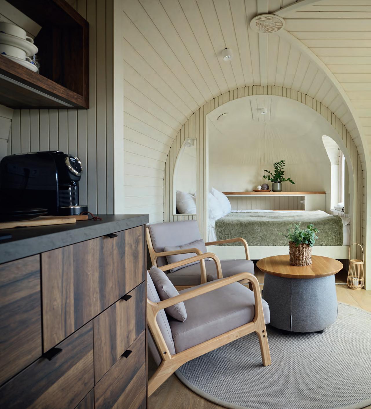 wurde mit Liebe zum Detail entwickelt, um Eleganz, Funktionalität sowie Langlebigkeit zu vereinen. Die luxuriösen Urlaubsdomizile fügen sich harmonisch in die Landschaft ein. Es werden perfekte Rückzugsorte für Familien, Freunde oder auch Paare sein. Wir haben uns von skandinavischem Design inspirieren lassen und arbeiten mit einem renommierten