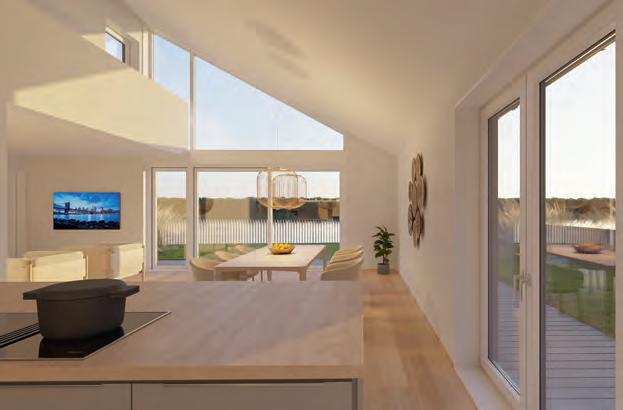 Kopenhagener Architekturbüro zusammen. Nachhaltiges Bauen hat einen hohen Stellenwert. Es handelt sich um KfW 55 Häuser mit Thermo-Holzverkleidung. Wir nutzen einen benachbarten See, um das Sonnenlicht in Energie umzuwandeln, und Aquathermie – sind also im Bereich Energie komplett autark. Jedes Haus ist ein Top-Investment mit