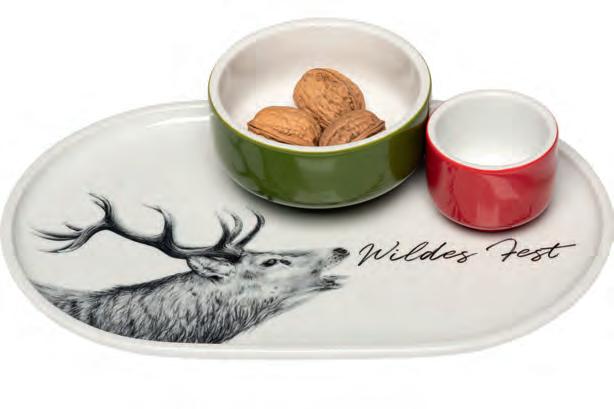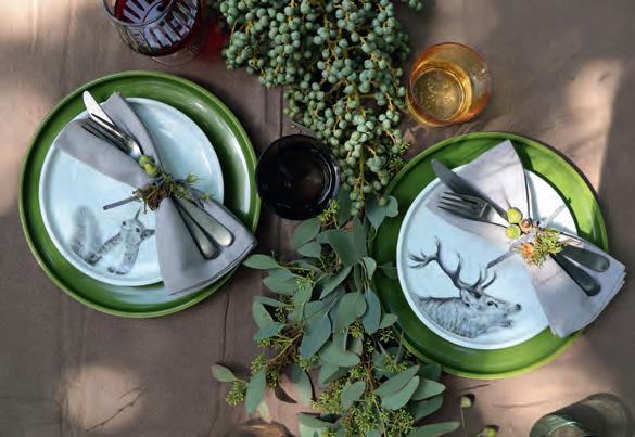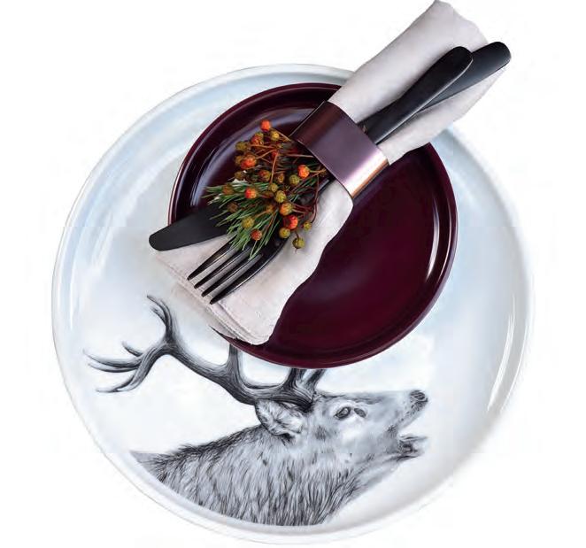 60 Wenn der Wald den Tisch deckt Die neue Herbst/Winter-Kollektion der thüringischen Manufaktur mittelpunkt holt die heimische Tierwelt ins Esszimmer, zeigt ein Design mit detailliert gezeichneten Waldmotiven auf Porzellan – tierisch schön!