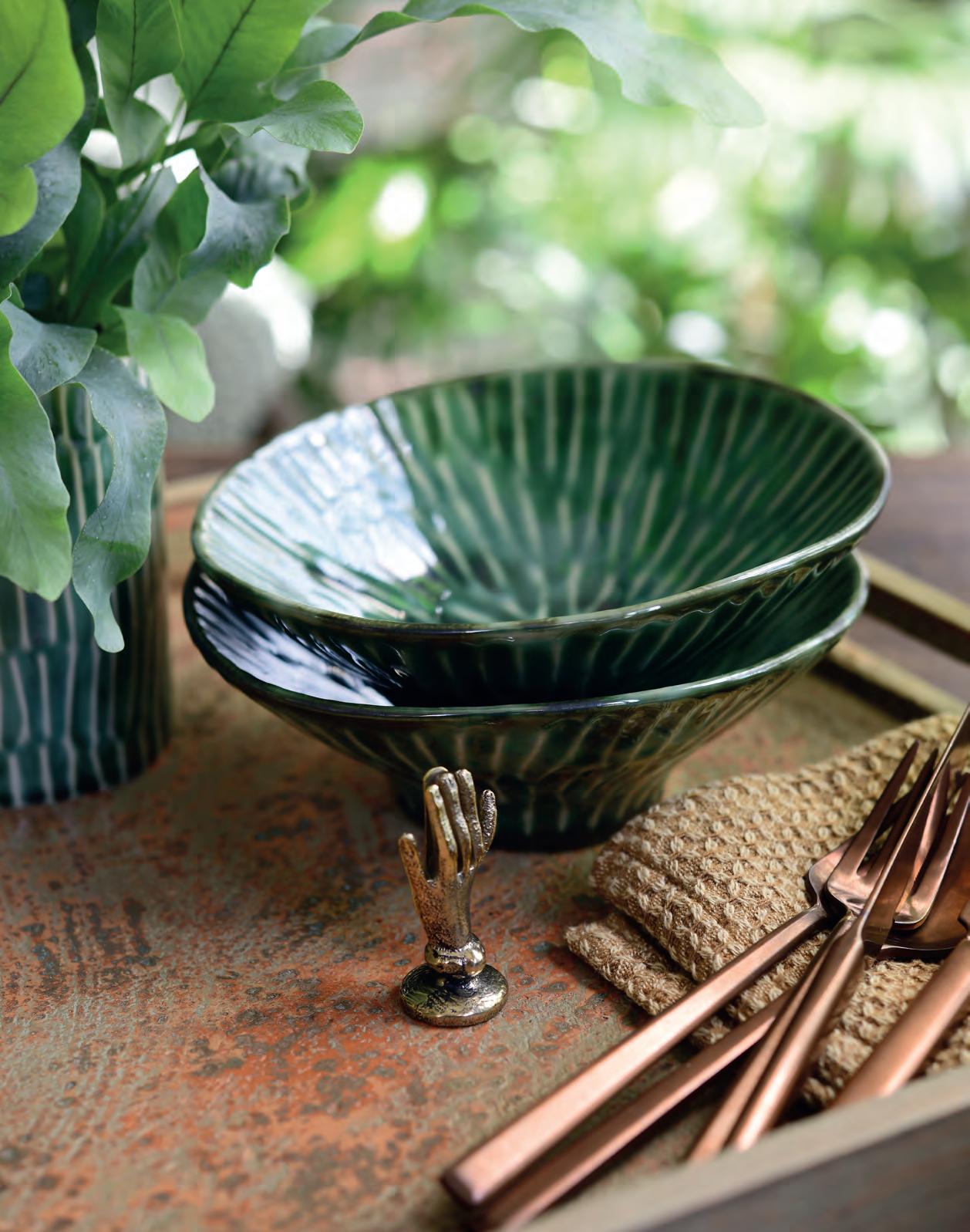 56 Verde Lanza – eine Hommage an Lanzarote Grün – die Farbe der Hoffnung, die Farbe der Insel Lanzarote und nun auch die Farbe edler Keramik. Schalen, Teller, Schüsseln und Tassen begeistern mit besonderem Flair – geschaffen von der Designerin Pascale Naessens.
