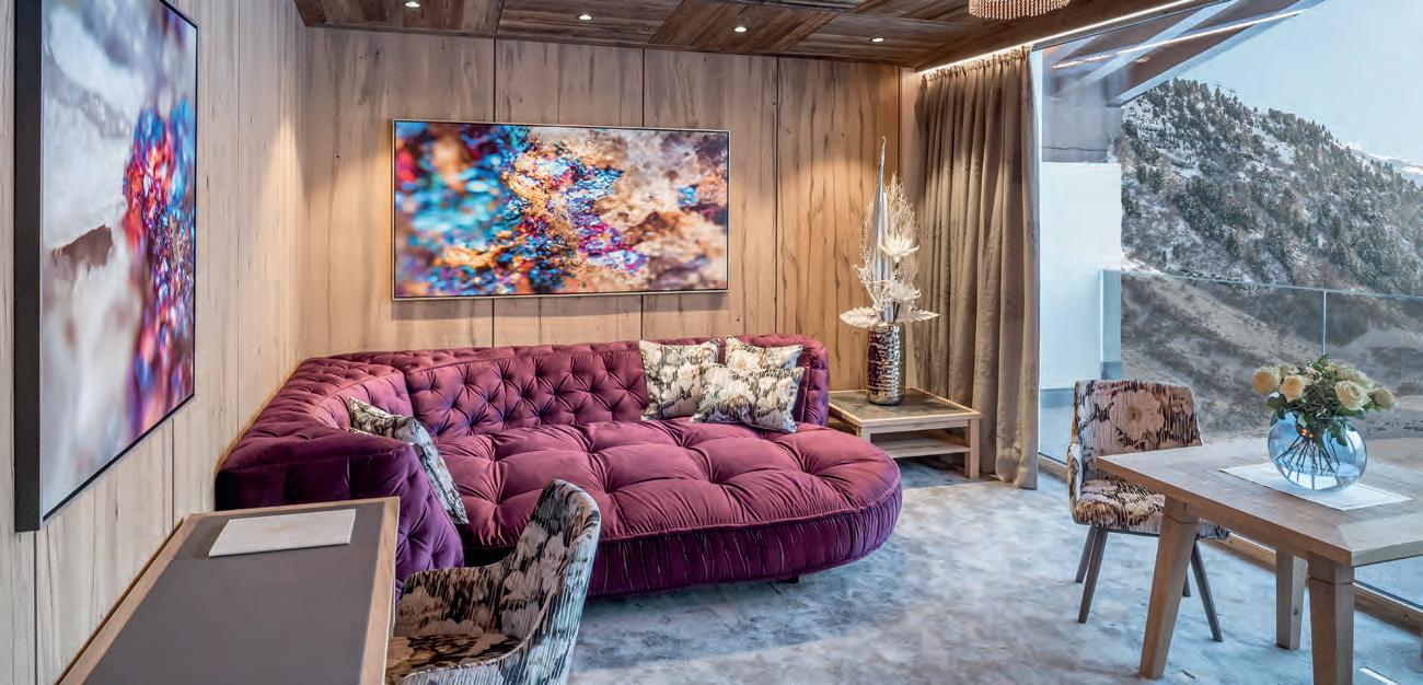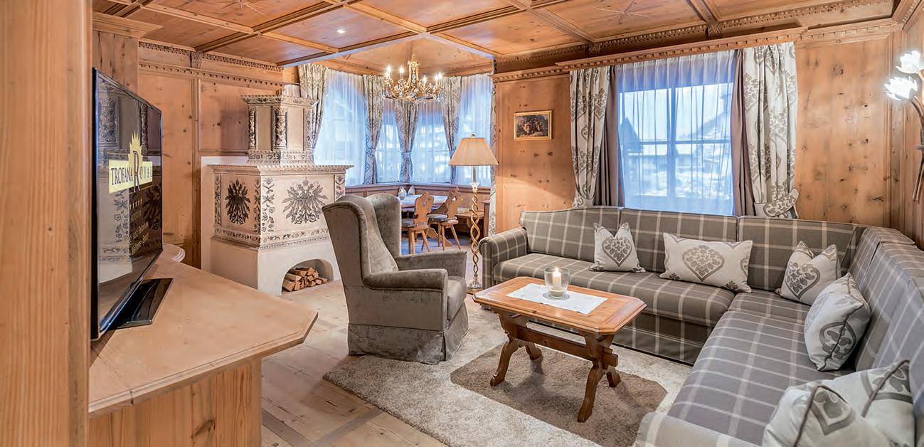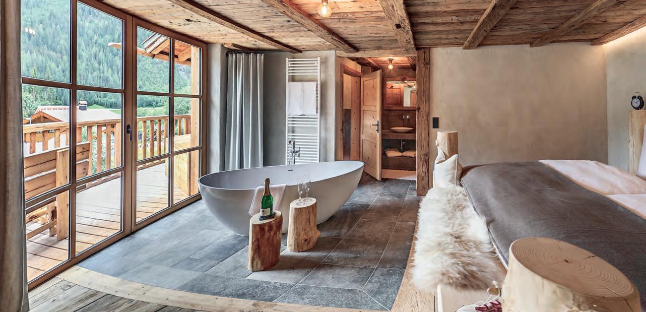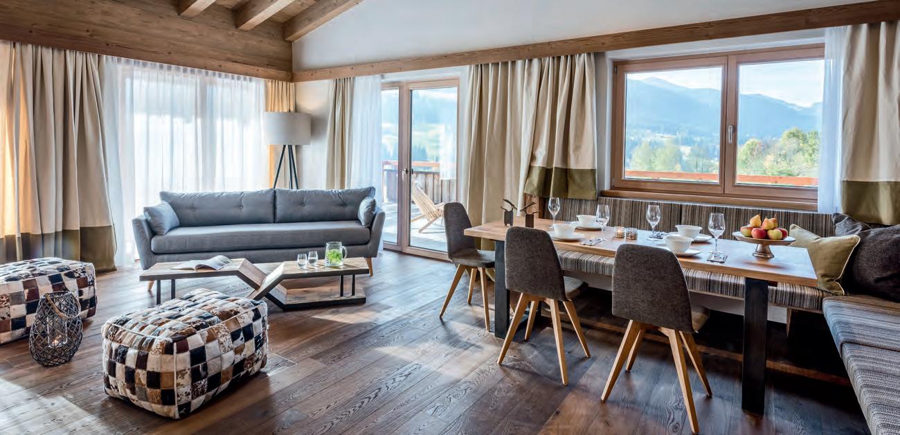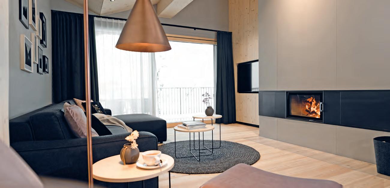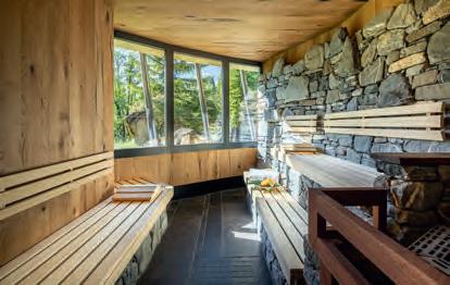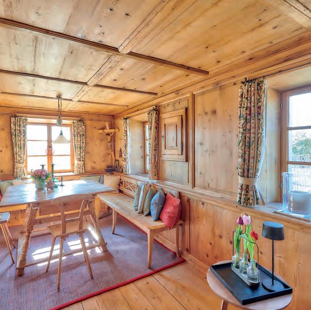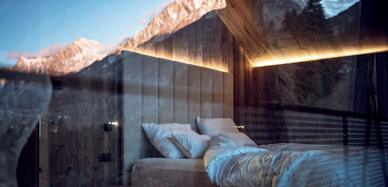Ein Chalet-Resort nur für Erwachsene am Eingang zu den berühmten Grödner Dolomiten. Rosamunde und Walter und ihre drei erwachsenen Kinder haben im Bergdorf Lajen auf 1 000 m Seehöhe in einzigartiger Südlage ein 2 ha großes Urlaubsparadies erschaffen, das vor allem Paaren einen kostbaren Romantikurlaub beschert. Zur Auswahl stehen elf ChaletKategorien wie Lodges, ebenerdige Chalets und zweigeschossige Chalets inklusive Terrasse und Garten. Das Nonplusultra ist das weltweit einzige ReinholdMessner-Chalet mit persönlichen Einrichtungsmerkmalen des berühmten Bergsteigers. Alle Domizile wurden in Naturstein mit rustikalen Holzdielen und Steinbädern nach alter Handwerkskunst vom Hausherrn selbst geplant und eingerichtet. Raumhohe Glasfronten holen die Natur in die Wohnräume, die über eine komplett ausgestattete Wohnküche verfügen. Ein romantischer Kamin lädt zum Entspannen ein.