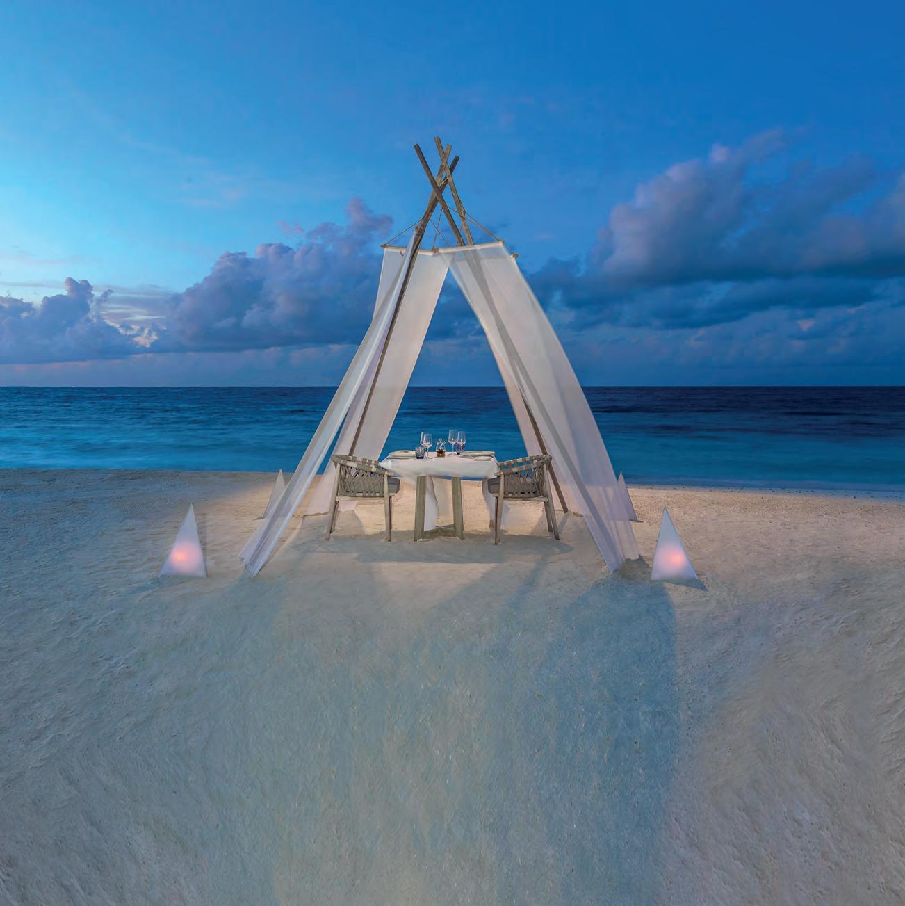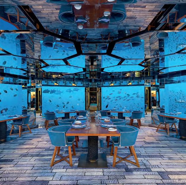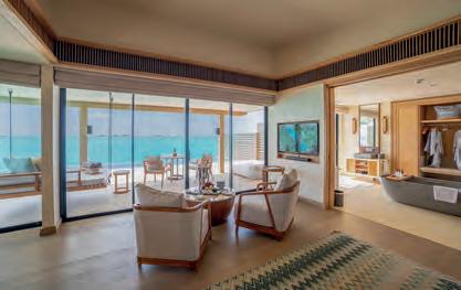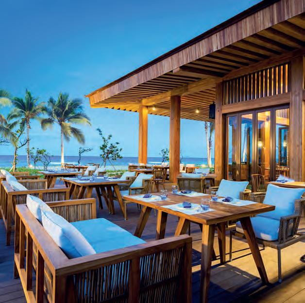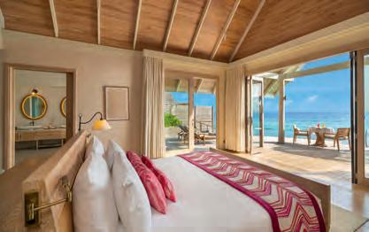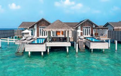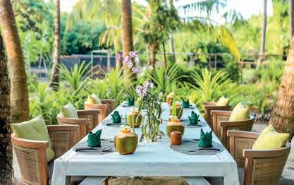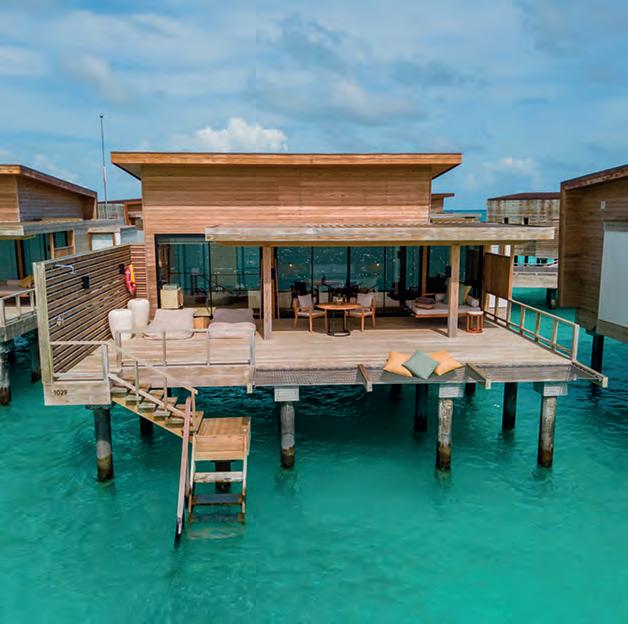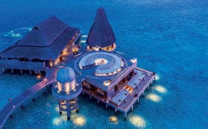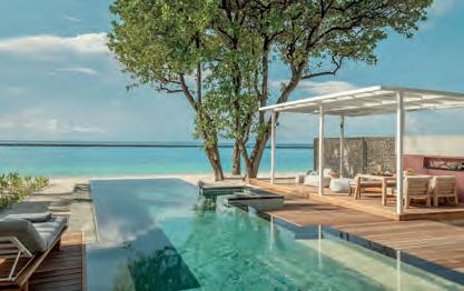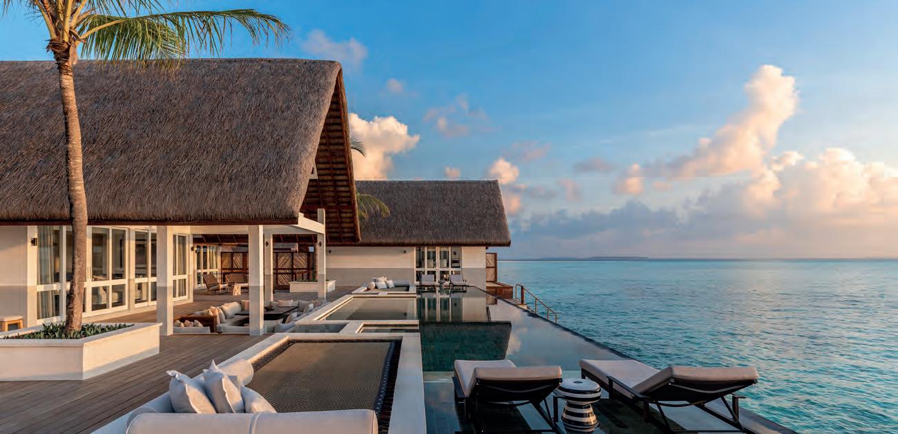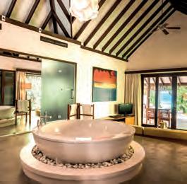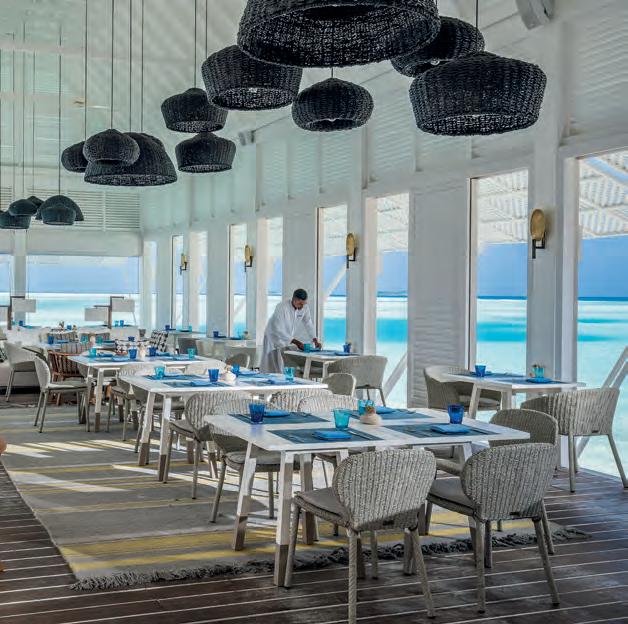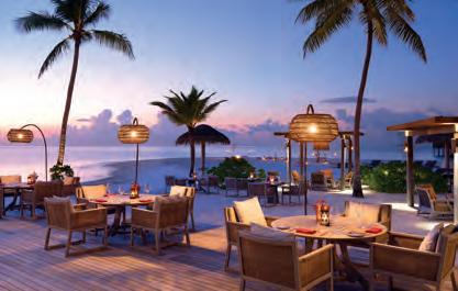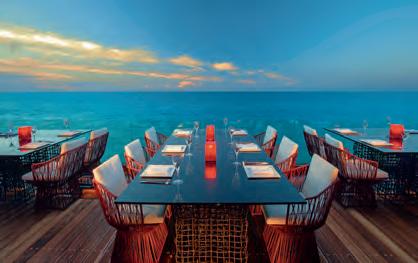 The stylish gourmet island Coco Bodu Hithi stands not only for paradisiacal nature and exclusivity, but also for ecologically thought-out luxury. A sophisticated design concept meets respectful treatment of the island’s flora and fauna. Numerous restaurants and bars, wellness treatments in the “ Coco Spa” and excursions to the spectacular underwater world around the island fill the stay on Coco Bodu Hithi with unique memories. The ambience in the one hundred magnificently designed luxury villas and suites – all refined with a private pool – is dreamlike. At 188 square metres, the 44 “Island Villas” are the most spacious, which is further emphasised by the loft-like room layout without partitions. Those who want to relax in one of the private outdoor areas of the „Island Villa” have the choice between a sun terrace with sea view and a separate garden area with pool. The 16 109square-metre “ Water Villas” and the 16 144-squaremetre “Escape Water Villas” are built on pillars directly in the water and connected with walkways, making them seem to float above the surface of the sea. With its five restaurants and two bars, the tropical island offers a variety of exquisite gourmet cuisine with a Maldivian influence and thus the gastronomic terrain for star chefs and bar legends from all over the world.