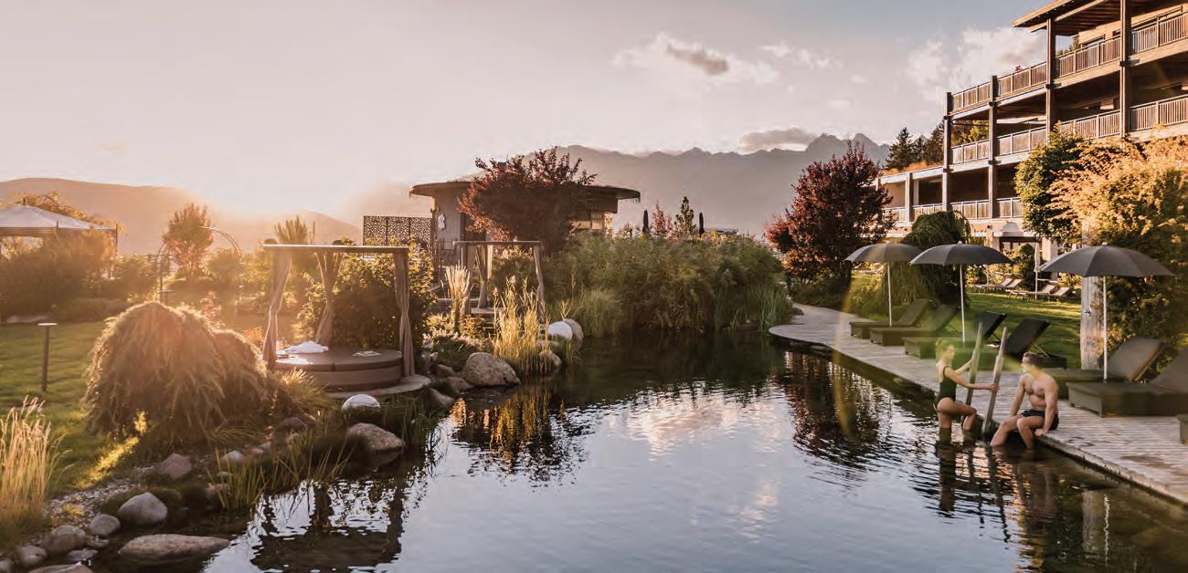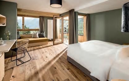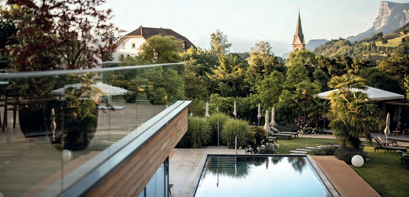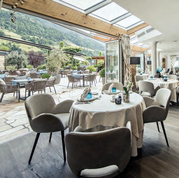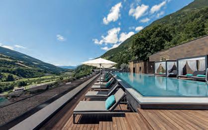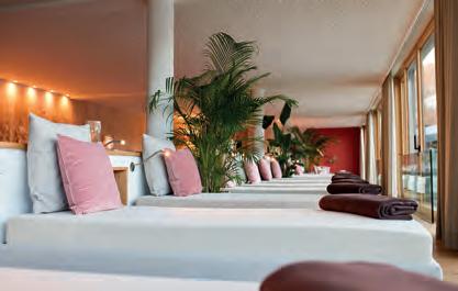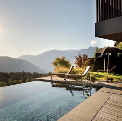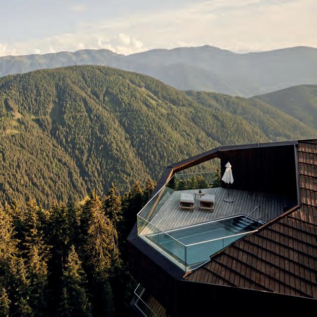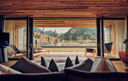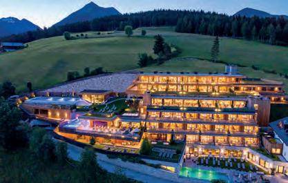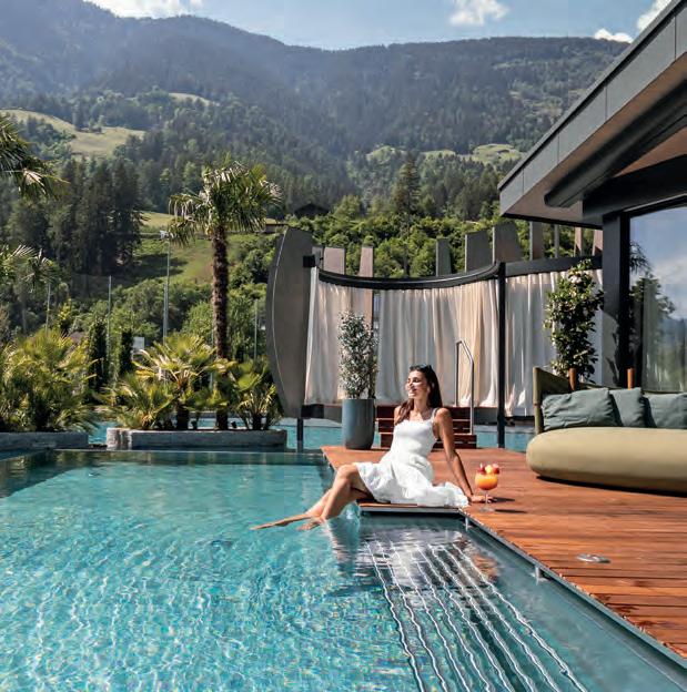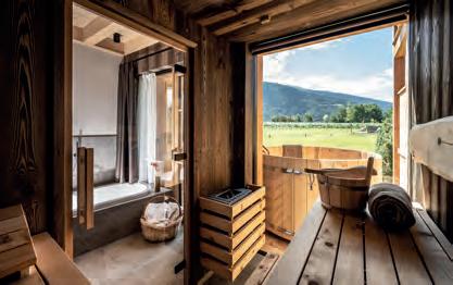 Heilmassagen im eigenen Reich runden das WellnessAngebot ab. Darüber hinaus wird den Gästen ein kostenloses Fitnessprogramm sowie vergünstigtes Golfen unterhalb der Seiser Alm geboten. Seit Sommer 2022 gibt es zwei neue Highlights: einen beheizten Design-Outdoor-Infinity-Pool sowie zwei LuxusLodges. Morgens wird man mit einem Frühstück in der Unterkunft oder am Büfett im Haupthaus verwöhnt.