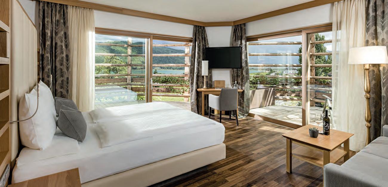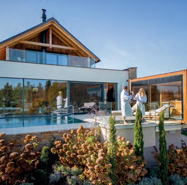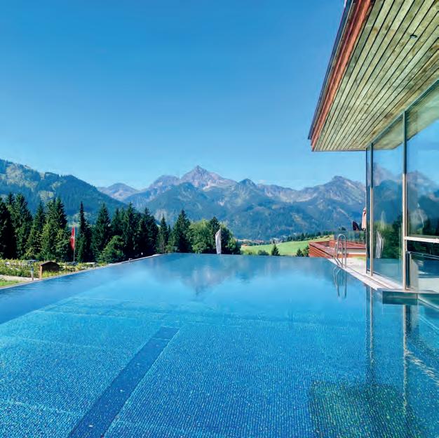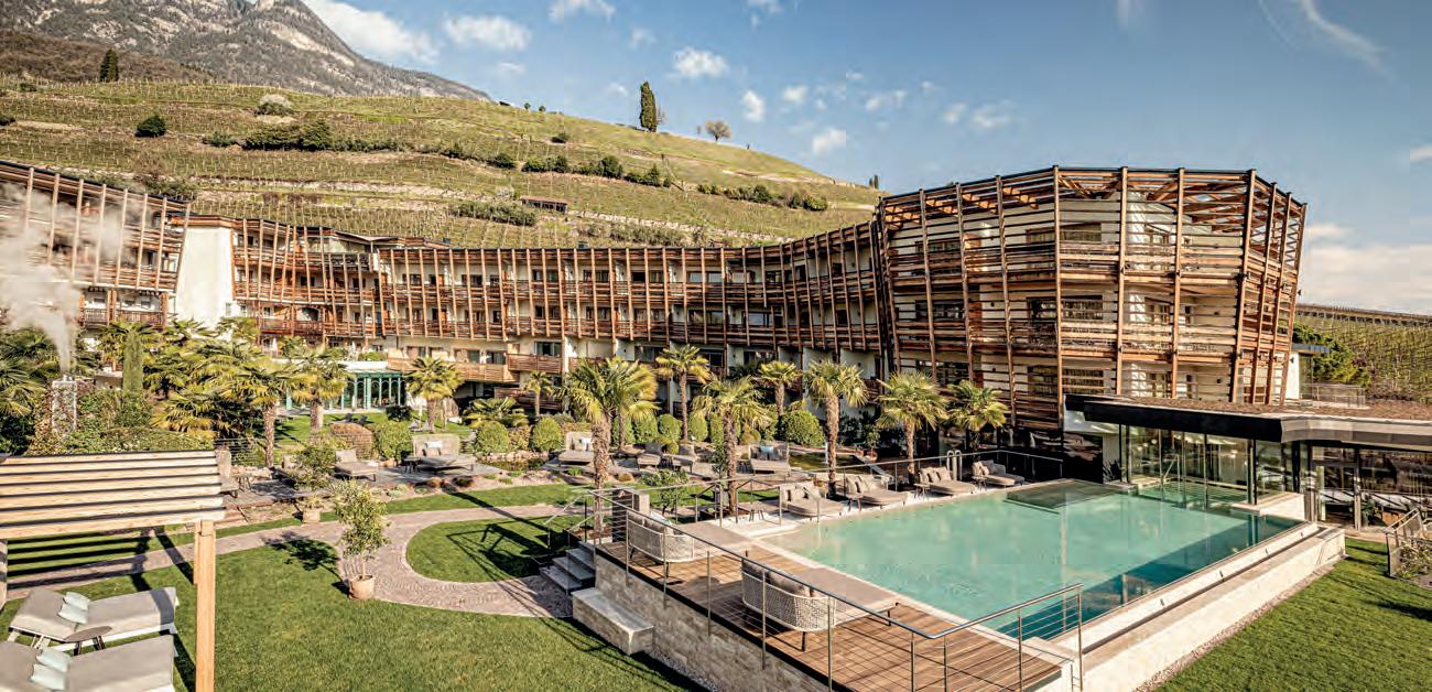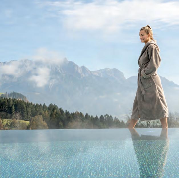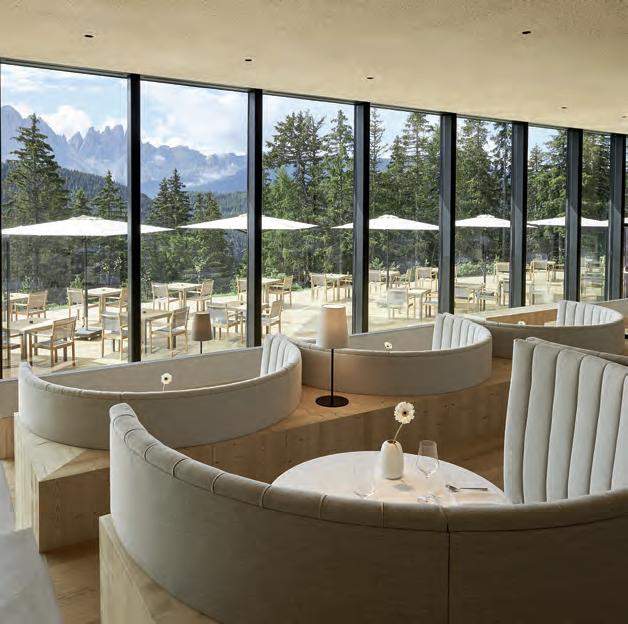 Heilmassagen im eigenen Reich runden das WellnessAngebot ab. Darüber hinaus wird den Gästen ein kostenloses Fitnessprogramm sowie vergünstigtes Golfen unterhalb der Seiser Alm geboten. Seit Sommer 2022 gibt es zwei neue Highlights: einen beheizten Design-Outdoor-Infinity-Pool sowie zwei LuxusLodges. Morgens wird man mit einem Frühstück in der Unterkunft oder am Büfett im Haupthaus verwöhnt.