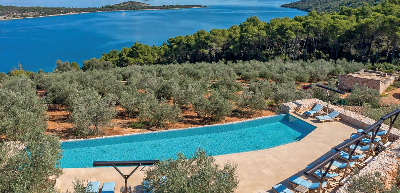 Surrounded by beaches and cliffs, olive groves and forests, Villa Nai 3.3 on the island of Dugi Otok is an architectural jewel that fascinates with its unusual geometry and seamless fusion with the terrain. Unpretentious and of authentic beauty, the hideaway designed by architect Nikola Bašić blends into the surrounding nature in the heart of Dalmatia. The 40 000 sqm organic olive grove with vegetable and herb garden houses an olive oil production facility, a tasting room and the luxurious accommodation for international travellers. Discerning guests can look forward to eight rooms and suites with terraces – built from local stone and refined with designer furniture in the interiors. It is wonderful to experience how Croatian hospitality blossoms through the Villa crew, who take care of the individual wishes of the guests during their stay and crown the holiday with a feelgood stay. Rooted in Dalmatia, Villa Nai 3.3 is also a place of culinary delights. The island provides the culinary treasures in organic quality in the form of vegetables, fish and meat in the Grotta 11 000 restaurant. A delight, the multiawardwinning Dalmatian olive oil Nai 3.3. The gourmet experience in Restaurant 3.3 offers unusual menus with carefully selected wines. Pure relaxation is offered by the spa programme with a mix of the latest technologies and worldrenowned traditional treatments.