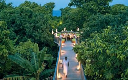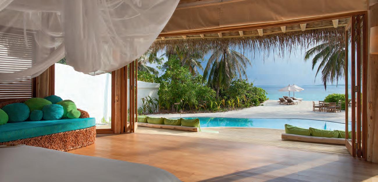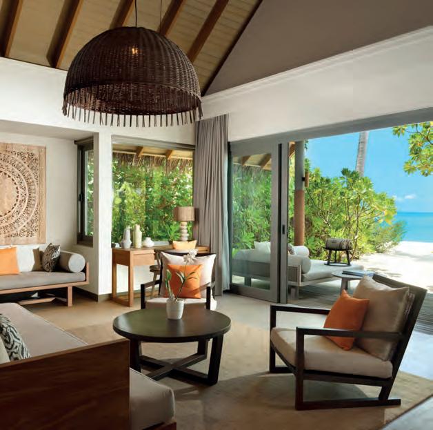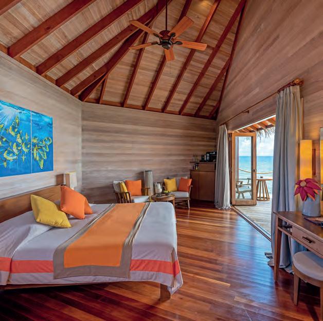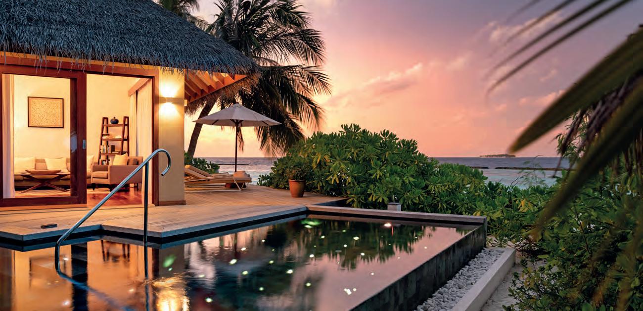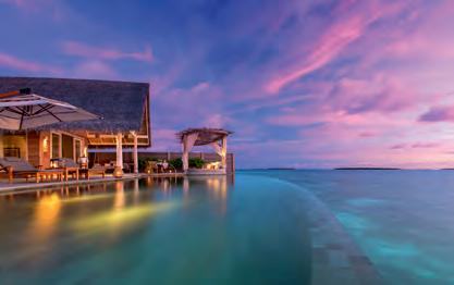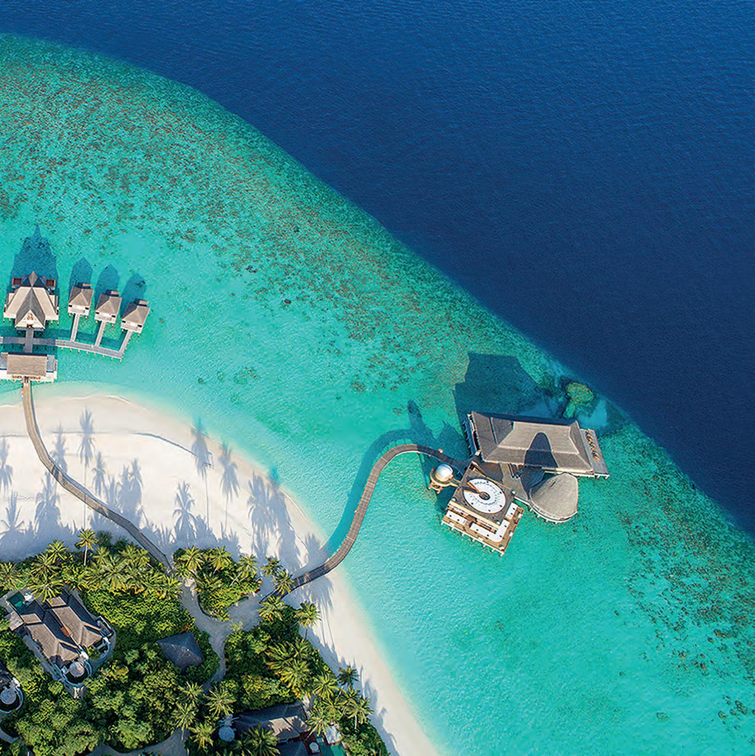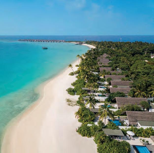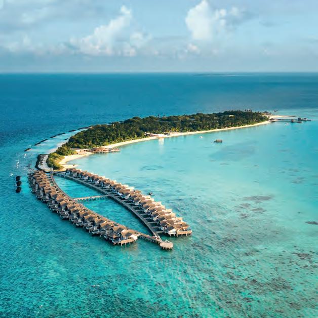 Das maledivische Luxusresort stellt die Vision eines authentischen und ökologisch durchdachten Luxus in den Vordergrund. Der Aufenthalt in dem vielfach ausgezeichneten Eco-Resort, welches sich mit verschiedenen Projekten für die Erhaltung und Regeneration der lokalen Tier- und Pflanzenwelt einsetzt, verspricht vor allem eines: wohlfühlen und entspannen im Einklang mit der Natur. Aufgrund der hohen Biodiversität wurde ein Teil des Baa-Atolls von der UNESCO zum ersten Biosphärenreservat der Malediven erklärt. Der ökologische Gedanke erstreckt sich auf alle Bereiche des Insellebens. Wer mal so richtig abschalten möchte, findet in den 98 Villen, die sich entweder im üppigen Tropengrün verstecken oder auf Stelzen über der Lagune stehen, einen mit allem Komfort ausgestatteten Rückzugsort. Großzügige Outdoor-Living-Bereiche, Open-air-Badezimmer oder der private Pool (in den Deluxe-Villas) sorgen für Naturerlebnisse. Im Herzen der Insel wartet das Coco Spa auf Beauty- und Wellnessfans, die die ganzheitliche, asiatische Heilphilosophie schätzen. Es ist ein friedvoller Ort, der keinen Wellness- und RelaxWunsch offenlässt. In den zwei Restaurants speisen Gäste maledivische, asiatische, indische und ThaiCuisine, die den Gaumen herausfordert. Die einzigartige Unterwasserwelt, Schnorcheln mit Mantas, Schildkröten und Delfinen oder ein Ausflug mit dem erfahrenen Taucherteam zu den faszinierenden Diving-Hotspots der Malediven gehören zu den Highlights eines Aufenthaltes.
