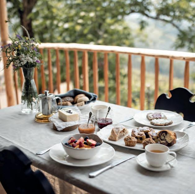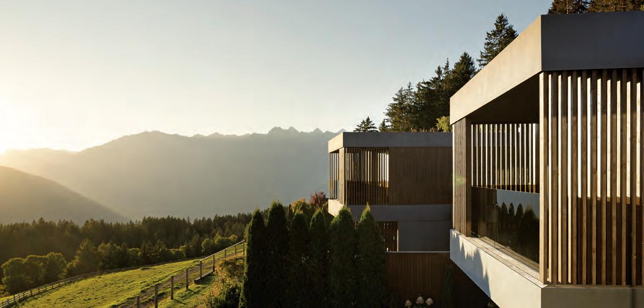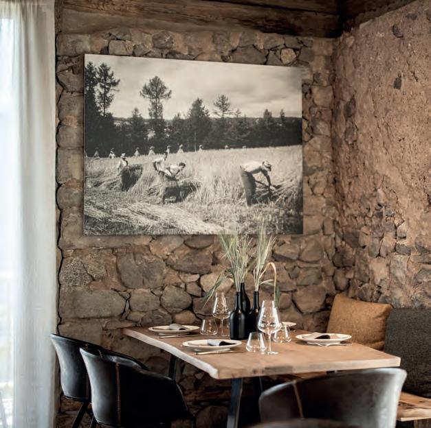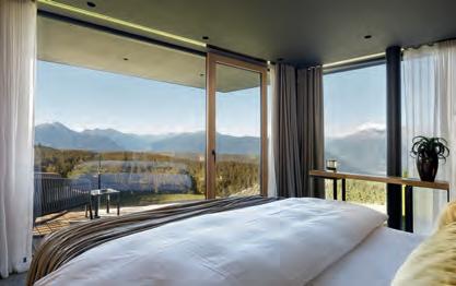 Der Ritten ist ein sonniges Hochplateau oberhalb von Bozen in Südtirol. Im Norden wird es vom Rittner Horn (2 260 Meter) überragt, die Gemeinde Ritten liegt auf 1154 Metern. Das pittoreske Örtchen ist die Heimat von Familie Messner, Winzer und Gastgeber aus Leidenschaft. Unterhalb des Ortskerns von Oberbozen liegt Spornberg, einst Adels- und Rittersitz, später halb verfallen. Viele Jahre später wurde der verwunschene Ort aus dem Dornröschenschlaf erweckt und mit neuem Leben gefüllt. Entstanden ist das Spornberg Mountain Living mit drei luxuriösen, behaglichen, im landestypischen Stil eingerichteten Appartements. Nordberg (127 qm), Ostberg (81qm), Westberg (66 qm) bieten bis zu fünf Gästen Platz, verfügen über Terrasse, Privatsauna und eine komplett ausgestattete Küche. Sie bieten, umgeben von Weinreben, Wiesen und Bergen, ein wunderbares Zuhause auf Zeit, inkludieren ein reichhaltiges Frühstück. Im Stadel laden die Gastgeber jeden Donnerstag zum gemeinsamen Abendessen (gegen Gebühr) ein. Frisch zubereitet wird ein Menü aus regionalen Produkten – begleitet von edlen Tropfen vom eigenen Weingut Spornberg. Denn vor einigen Jahren wagten sie das Abenteuer, einen Weinberg anzulegen, pflanzten in exponierter Lage Burgunderreben und keltern heute exzellente Blauund Weißburgunder. Nachhaltigkeit ist Familie Messner sehr wichtig und so wird die Energie zu 100 Prozent aus erneuerbaren Quellen bezogen.