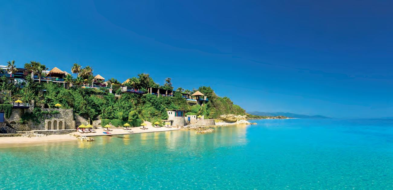 Not only for holidaymakers seeking relaxation and pleasure Zakynthos is one of the most beautiful Greek islands in the turquoise blue Ionian Sea. On the secluded island, idyllically situated on a paradisiacal private bay, is the luxurious boutique hotel Porto Zante Villas & Spa, which offers its guests the finest personal services unforgettable moments in the midst of untouched nature. From the nine awardwinning beach villas with stylish interiors and luxurious features, such as their own swimming pool, enchanting garden or private beach area, you can enjoy an almost endless view over the crystal blue sea to the island of Kefalonia. In the waterfront spa directly over the water – or quite privately in the own villa – body and mind are pampered with unique treatments from around the world. The finest culinary highlights are taken care of in the “Club House Restaurant ”. Here guests can enjoy excellent Greek specialities, creatively spiced with Mediterranean elements. The beautifully located “ Maya “ by the sea is famous for its Asian fusion cuisine. And in the “Chill-Out Bar ” you can reflect on a dream day or two with extravagant cocktails and fine wines. Furthermore, there are a 24-hour dining service at the villa and various culinary events such as private barbecues or beach dinners. An incomparable getaway for vacationers looking for unforgettable activities and experiences that leaves nothing to be desired for both families and couples.