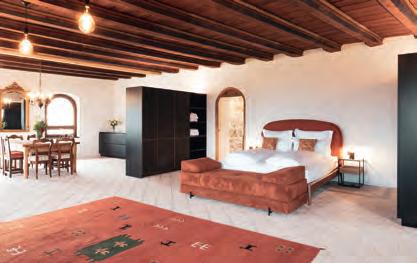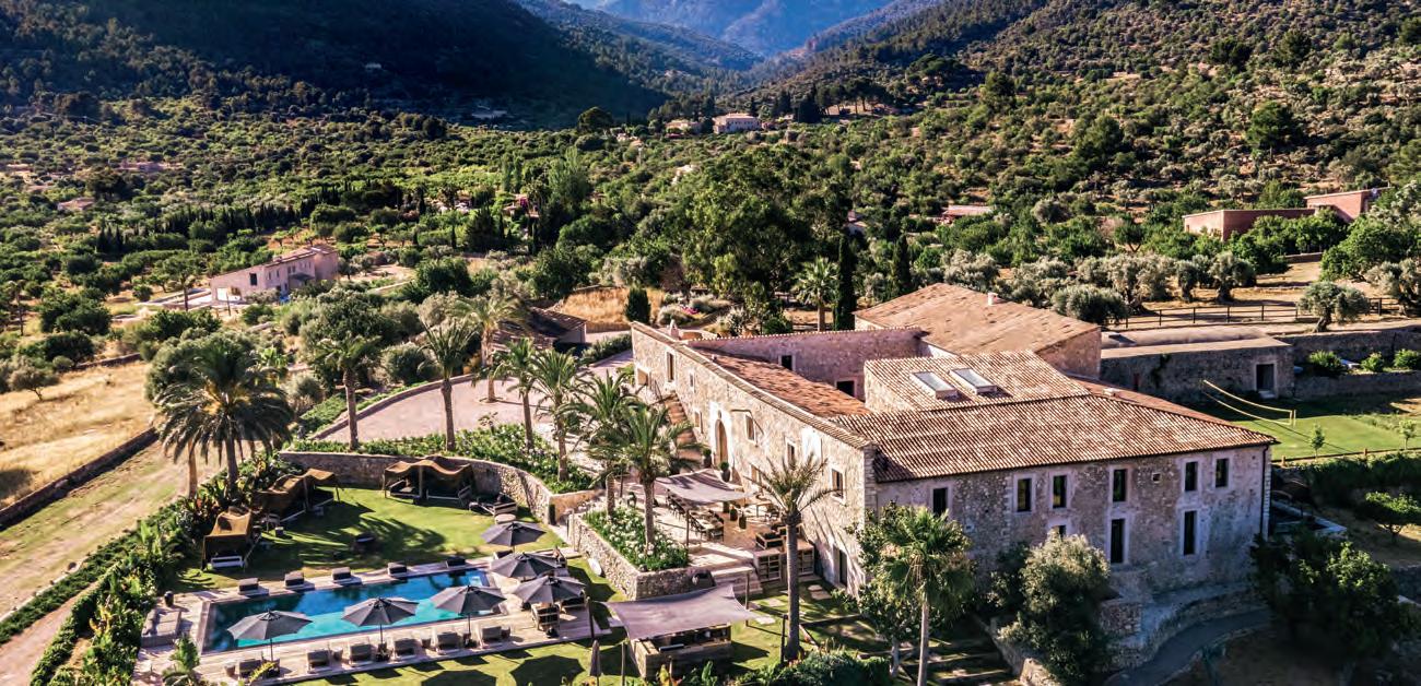 Es ist das wohl außergewöhnlichste Feriendomizil auf Mallorca. In spektakulärer Lage mit Blick auf die Zwillingsberge von Alaró schuf der schwedische Unternehmer und Hotelier Mats Wahlström nordöstlich von Palma aus einem anno 1350 erbauten Herrenhaus ein Luxusdomizil, das seinesgleichen sucht – Spirit of Son Fuster. Das im März 2022 eröffnete Privathotel ist Familien, Freunden oder ManagementTeams zur alleinigen Nutzung vorbehalten und garantiert absolute Privatsphäre. Im Garten des 40 Hektar großen Grundstücks wachsen Obst, Gemüse und schwarze Trüffel. Zehn hochwertigst ausgestattete Doppelzimmer (darunter ein rollstuhlgerechtes Zimmer) lassen keine Wünsche an Komfort und Luxus unerfüllt. Ein privater Koch setzt ein individuell abgestimmtes, gesundes, biologisches VollpensionFoodKonzept um, zu dem hochwertige mallorquinische Weine gereicht werden. Außerdem wird ein ConciergeSer vice angeboten, der individuelle Gästewünsche erfüllt. Ein Pool, Fitnessstudio, SPA mit Massage und BeautyTr eatments, Kino, Bikes, Yoga, Billardtisch, HelikopterSer vice, ein hochmodernes Soundsystem von Bose sowie der perfekte, diskrete Service zählen zu den weiteren Annehmlichkeiten des LifestyleHideaways. Das Interieur vereint das historische Spanien mit Nordafrika, dem amerikanischen Westen sowie Kunstwerken und modernem Zeitgeist zu einem perfekten CasualMix. Nachhaltigkeit wird ebenfalls großgeschrieben, der gesamte Strom wird über den eigenen Solarpark erzeugt.