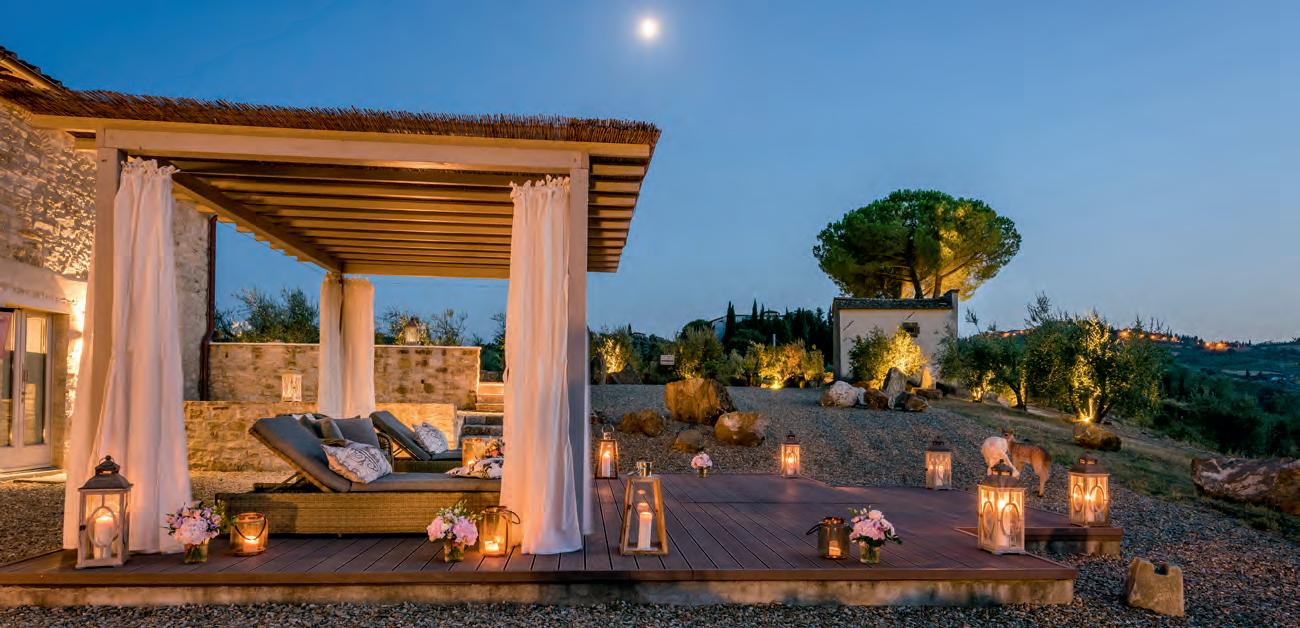 Das Vitigliano Private Hideaway mit seinen neun luxuriösen Suiten liegt, umgeben von toskanischer Bilderbuchlandschaft in Greve, nur 40 Minuten von Florenz entfernt. Es bietet einen wunderschönen Rückzugsort für Menschen mit Sinn für Exklusivität, Nachhaltigkeit und Gesundheitsbewusstsein. Das Refugium der deutschen Besitzerin Marion Hattemer verbindet den Anspruch auf größtmöglichen individualisier ten Service mit der Aussicht auf ganz besondere Treffen von Familie oder Freunden, Meetings und Retreats. Termingerecht für die kommende Sommersaison empfiehlt sich die neue Suite mit ihren stilvollen Interieurs, auch die 2021eröffnete Poolbar findet großen Anklang bei den Gästen. Ebenso inspirierend, dem Erfolgsgeheimnis der zahlreichen Auszeichnungen – darunter der begehrte Award „HIDEAWAY of the Year 2016“ – nachzuspüren, ist es, einmal das Vitigliano als exklusive Privatresidenz für bis zu 18 Personen zu mieten. Der Preis hierfür beträgt inklusive Frühstück und Housekeeping ab 4900 Euro pro Tag für die ins ge samt neun Suiten. Lunch und Dinner können optional zugebucht werden. Mit dem Besuch von Weltklasse-Weingütern, von Kunst- und Kulturstädten, mit Wandern, Golfen und Radfahren in der wunderschönen Landschaft findet hier der toskanische Traum definitiv seine Vollendung.