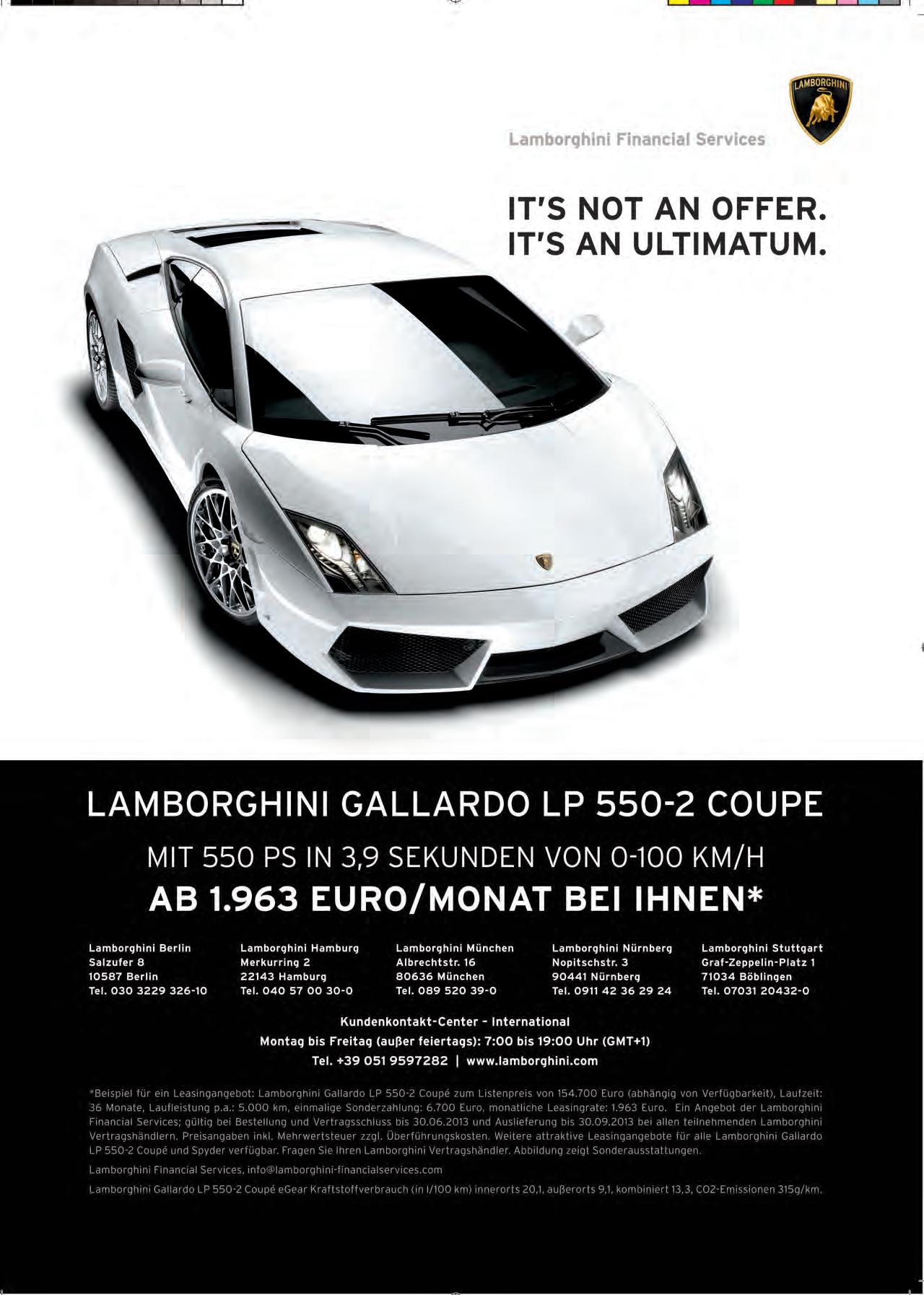 er uns im Exklusiv-Interview verriet. Entstanden ist ein ultimativer Grand Turismo und gleichzeitig der stärkste und dynamischste RollsRoyce aller Zeiten. Doch nicht nur in Goodwood entstehen Superlative, auch der neue Bolide aus Maranello, schlicht und ergreifend nur „LaFerrari“ genannt, verkörpert das Vermächtnis von Enzo wie kein anderer seiner Vorgänger. Da darf natürlich der ewige Rivale aus Sant’Agata Bolognese in nichts nachstehen und präsentiert mit dem Lamborghini Veneno eine auf drei Fahrzeuge limitierte Kleinstserie mit 750 PS zum Stückpreis von 3,5 Millionen Euro, die natürlich sofort verkauft waren. Superlative gibt es natürlich nicht nur auf vier, sondern auch auf zwei Rädern: die Hi-Tech-Rennräder der schweizerischen Manufaktur BMC, die mit ihrem Carbonrahmen und vielen Innovationen begeistern, wurden schnell zum Kult und werden gerade im fahrradverrückten Amerika als Statussymbole angesehen. Doch wir haben natürlich nicht nur Themen für Leser mit Benzin im Blut und Extrem-Racer, auch die Schöngeister sollen nicht zu kurz kommen: Fashionistas entführen wir mit den angesagten mediterranean colours an die Côte d’Azur, an die italienische Riviera und die Costa Smeralda. Und auch für Uhren-Liebhaber haben wir ganz besondere Meisterstücke, wie zum Beispiel die Portugieser Sidérale Scafusia, die exklusivste und komplizierteste Uhr, die IWC je gebaut hat, die erste Uhr, die die Sonnenzeit und die Sternzeit miteinander vereint. Auf der Vorderseite ist dieses faszinierende Meisterwerk eine klassische Portugieser, auf der Rückseite ein astronomisches Instrument und in ihrem Inneren ein Meilenstein der Haute Horlogerie.
