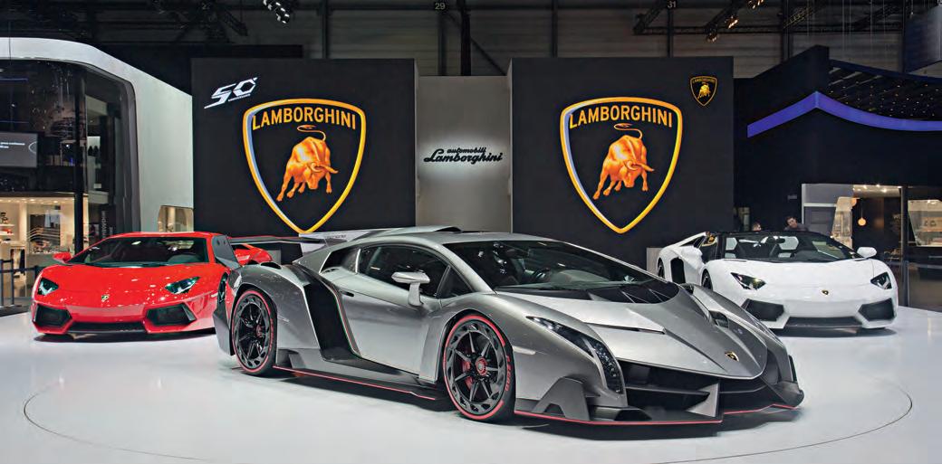 44 Der wildeste Stier aller Zeiten Zum 50jährigen Firmenjubiläum beschenkt sich Lamborghini selbst mit einem Supersportwagen, der in einer Kleinstserie von nur 3 Exemplaren gebaut wird: Der „Veneno“ wurde benannt nach dem wildesten und gefährlichsten Kampfstier.