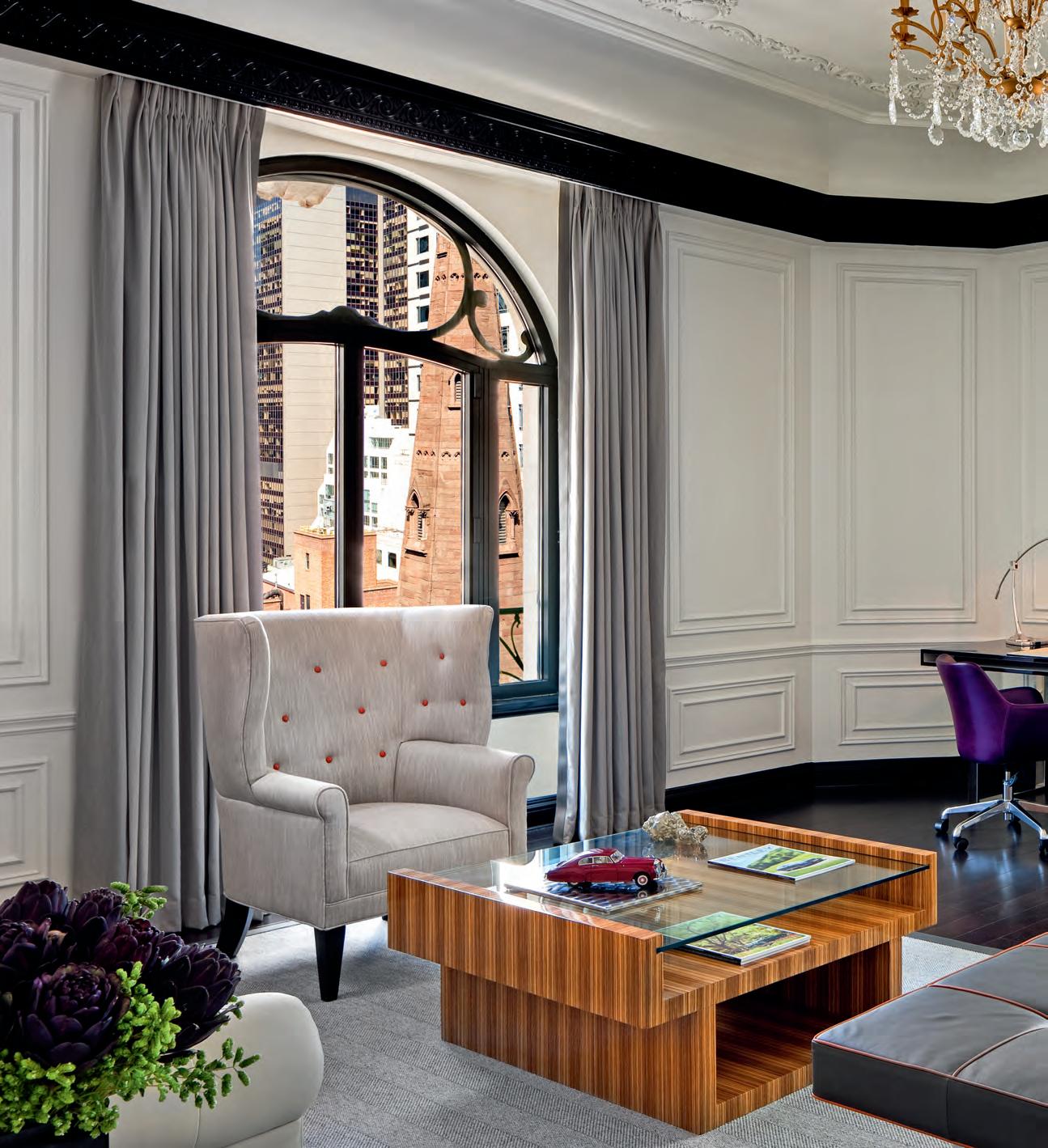 Im weltberühmten St. Regis New York entstand die erste BentleySuite, die die vornehme Eleganz der britischen Automarke ebenso widerspiegelt wie deren Vorliebe für handwerkliche Kunstfertigkeit und die Wahl bester Materialien.