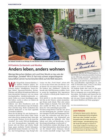 Anders leben, anders wohnen Wenige Menschen bleiben sich und ihrer Musik so treu wie der ehemalige „Zwiebel“-Wirt. Er hat trotz schwer angeschlagener Gesundheit seinen humoristischen Blick auf die Welt bewahrt.