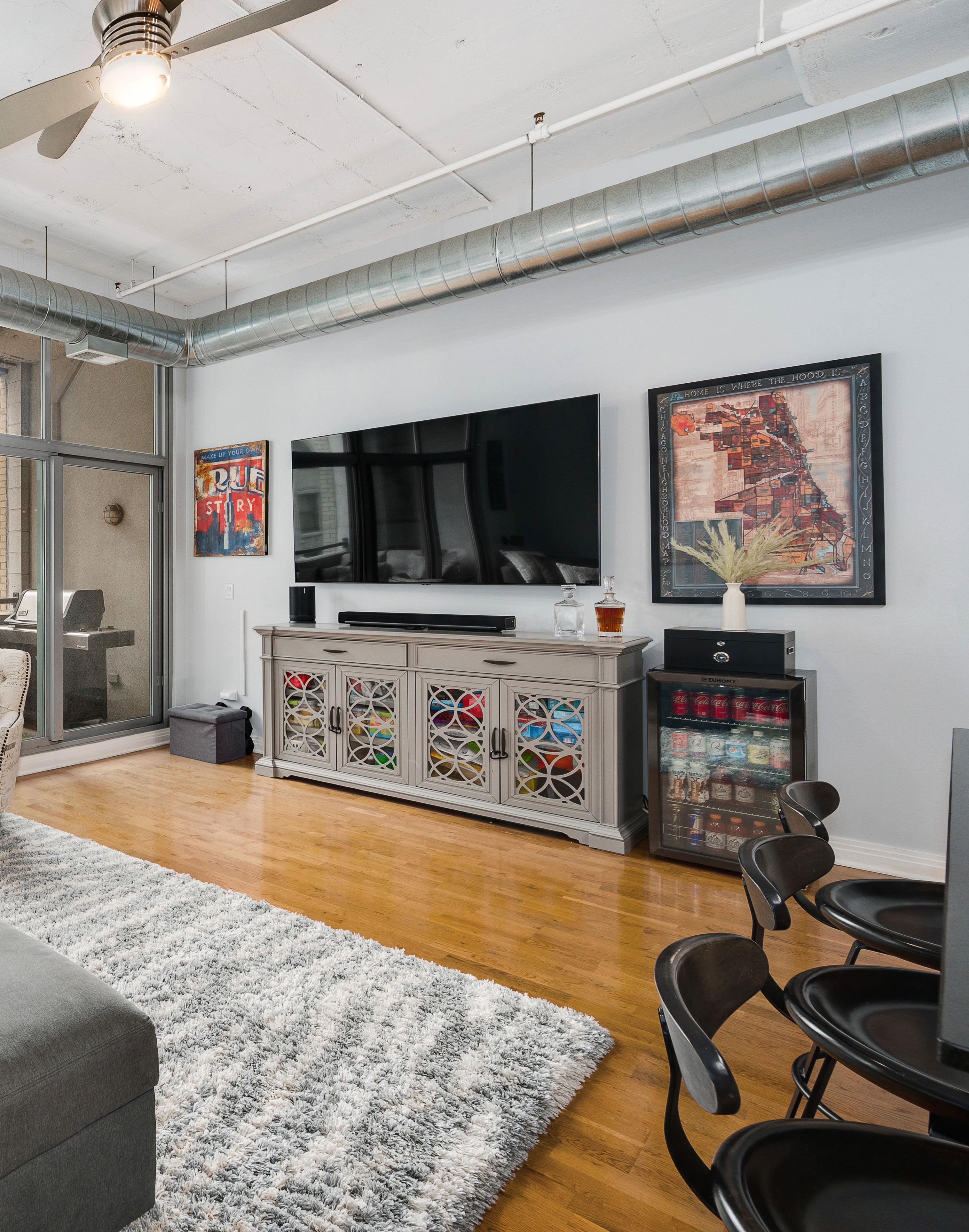 Discover the Premier Location in Chicago! Garage parking and 10x10 storage room included! Step into this spacious 2-bedroom, 2-bathroom concrete loft, ideally situated just moments from every form of transportation, Millennium Park, the Riverwalk, and the vibrant West Loop. This bright and airy loft features floor-to-ceiling windows, offering city views and abundant natural light. Enjoy an open living/dining/kitchen area with hardwood floors, leading to a large, covered balcony-perfect for relaxing outdoors. The kitchen boasts granite countertops, a generous island, newer stainless-steel appliances, and a custom backsplash, making it a chef’s dream. Retreat to the expansive primary bedroom, complete with a massive, organized walk-in closet and a luxurious marble master bathroom featuring dual vanity sinks and a separate shower/ soaking tub. The second bedroom comfortably fits a queen-sized bed and also includes ample closet space. Additional highlights of this freshly painted unit include newer carpeting in the bedrooms, a NEST thermostat for optimal climate control and In-unit laundry.