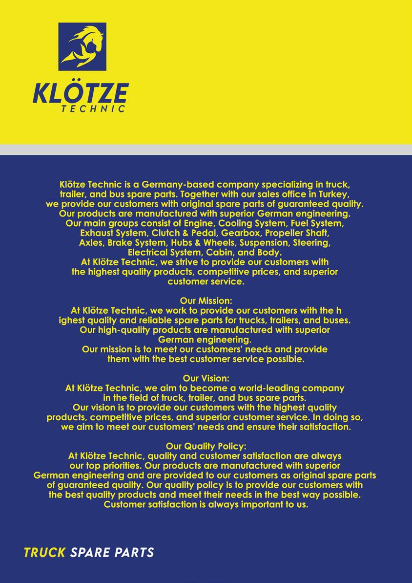 Klötze Technic 1st eln in Deutschland ansassiger Hersteııer uncl Lleferant von LKW-, Anhanger- und Bus-Ersatzteilen.