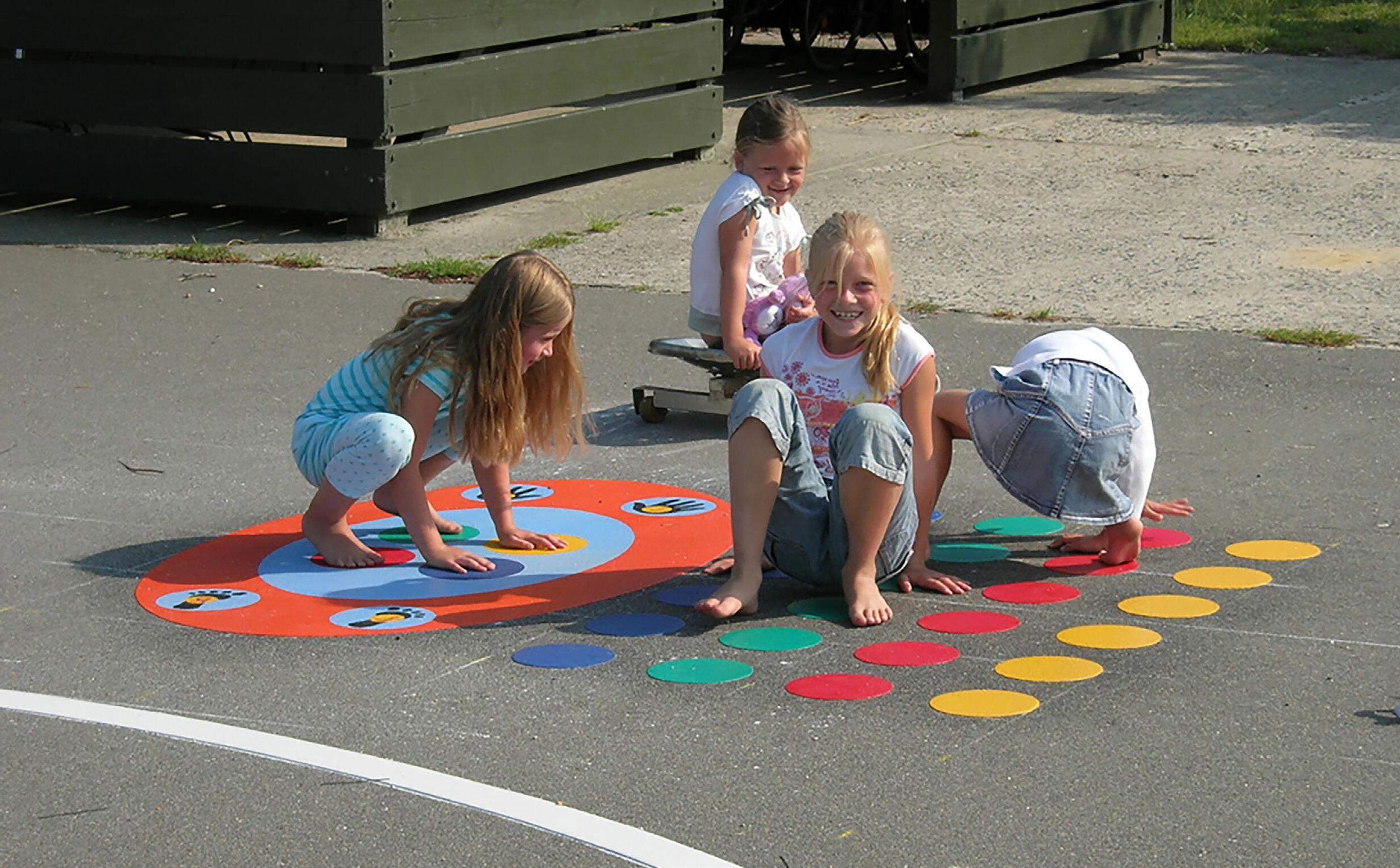 Hvorfor ikke dekorere uteområde med spreke farger og noe som trigger til aktiv læring.