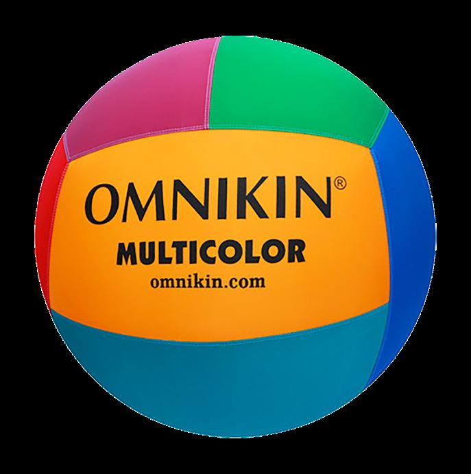 Omnikin® Multicolor er en stor og lett ball som kan brukes til ulike aktiviteter både innendørs og utendørs. Slitesterkt trekk i 100 % nylon
