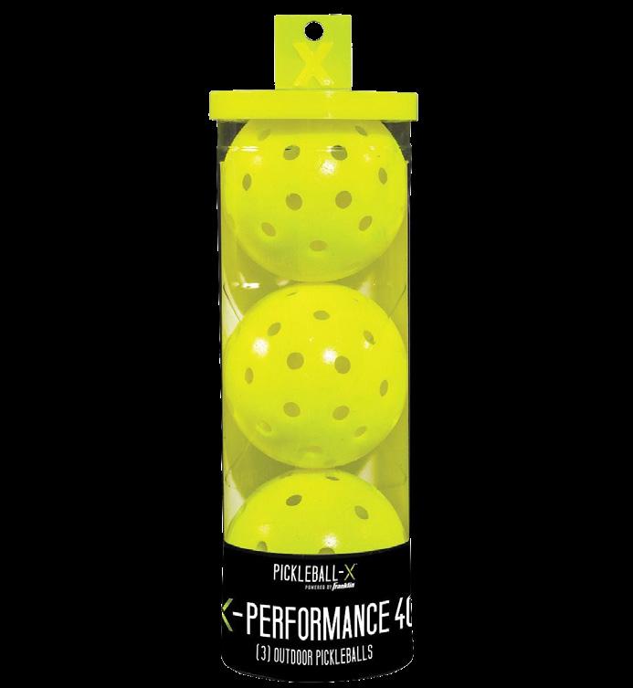 Settet består av to racketer, fire X-40 utendørs pickleballer.