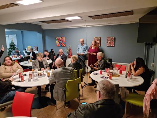 Myndin er tekin í síðustu afmælisveislu félaga á þessu ári. Ágætis mæting þrátt fyrir kulda og þæfingsfærð