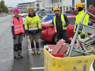 Þessar vörpulegu stúlkur komu með vinnupallaefni til að setja upp við klúbbinn