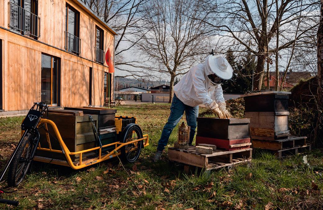 Auch als Imkerwagen kann der Anhänger genutzt werden, wie hier auf dem Grundstück des 2023 neu bezogenen Firmensitzes von CARLA CARGO