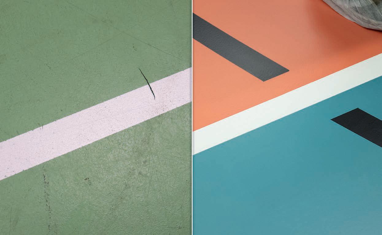 Der Boden zeigte starke Abnutzung, beschädigte Flächen, verschlissene Markierungen und entsprach nicht mehr den vorgeschriebenen Gleitreibwerten. Die Anforderungen der Betreiber waren klar: kurze Stillstandszeit, überschaubare Kosten und eine dauerhaft funktionsfähige Lösung - idealerweise auch optisch frisch und ansprechend.
