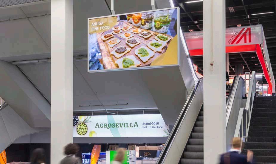 Von der stark frequentierten Passage 10-11 sind die beiden LCD Bildschirme beliebte Wegweiserauf die Ebenen der Halle 11 und Ihren Messestand.