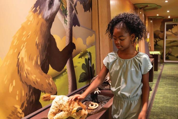 The large-scale permanent Dinosaur Hall is presented in two light- lled galleries. It rivals the world’s leading dinosaur halls for the sheer volume of individual fossils exhibited and for the size and awesomeness of the major mounts, including the world’s only T. rex growth series.