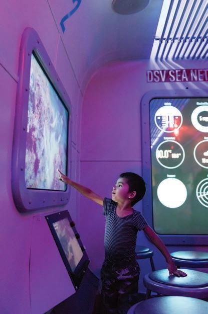 With a magni cent 63-foot n whale diving within it, the Otis Booth Pavilion is a dramatic entryway and an iconic north face of the Museum. Made possible by a $13 million donation from the Los Angeles based Otis Booth Foundation, the light- lled three-story glass structure is connected to Exposition Boulevard by a pedestrian bridge that soars over the Nature Gardens. Visitors have a dramatic view of the diving 7,000-pound n whale, one of the Museum’s signature specimens.