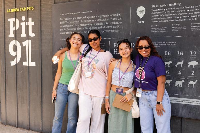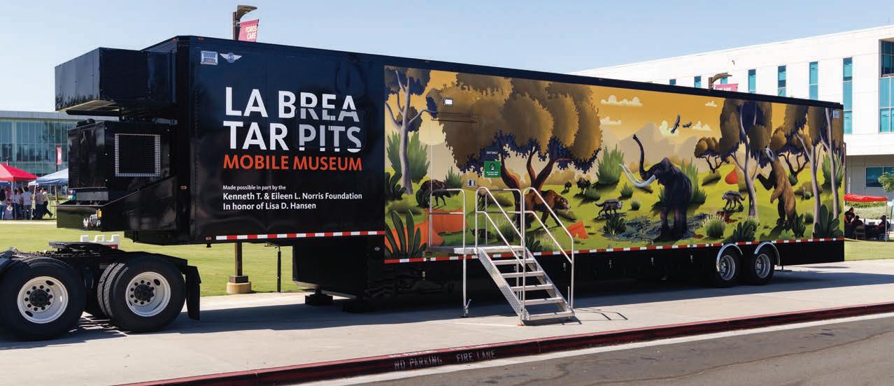 In the past year, La Brea Tar Pits and the Natural History Museum welcomed 1.2 million visitors and served 175,000 schoolchildren through eld trips and workshops. Our three Mobile Museums, sent to schools and parks throughout the County, served more than 800,000 students. We o ered STEAM Pathways education to learners from kindergarten through post-graduate, worked with community partners to o er engaging events on-and o -site, launched amazing new exhibitions, participated in the Getty’s regionwide Paci c Standard Time initiative, opened a new wing, published more than 73 scienti c papers, and so much more!