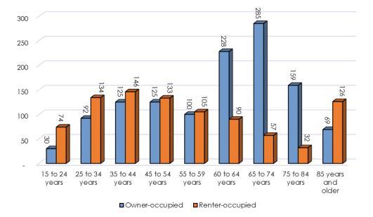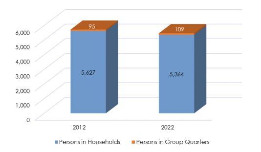 There were five age groups from 2012 with declining numbers in 2022. The group with the greatest loss was the 85 years+ (2022), which lost 379 persons over the period. This loss can be attributed totwocauses: 1) people moving on after