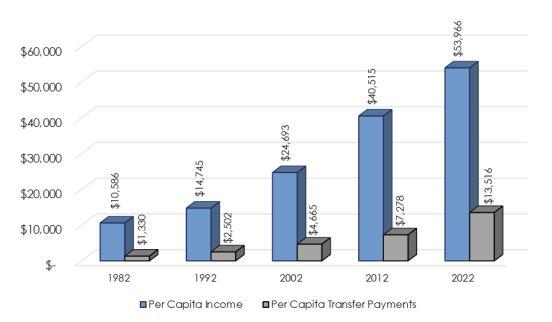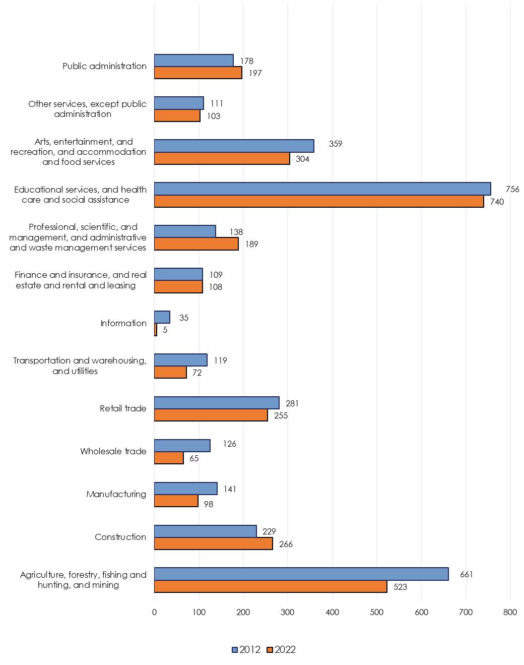 Table 2.1 contains the age group structure for Cherry County in 2012 and 2022. The examination of age structure provides an understanding of where some of the population shifts are occurring. These data allow for a better understanding of what could occur in the future. Reviewing population in this manner permits a detailed analysis of which specific groups are moving in and out of the county. Negative changes in a group indicate out-migration or a combination of outmigration and deaths.