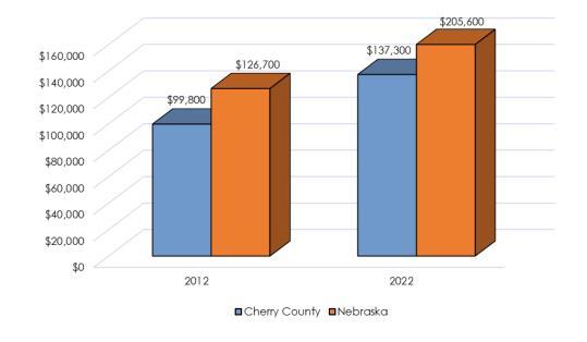 Cherry County saw growth in five age groups. The 0-4 and 5-9 groups are always an increase, since these individuals were not alive for the 2012 American Community Survey. Outside of the 2022 age groups of 0-4 and 5-9 years,the other increases were in the 10-14, 15-19, 30-34, 35-39, and 40-44 age groups. Overall, there was an increase of 1,086 persons in these age groups. When you eliminate the first two younger populations, 365 people actually moved into Cherry County during this period. This population increase consisted primarily of familyaged adults and children.