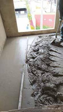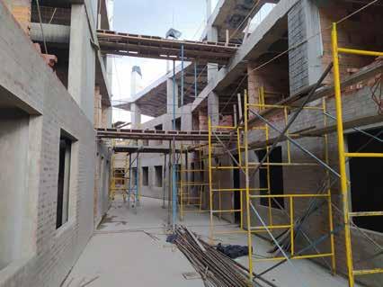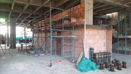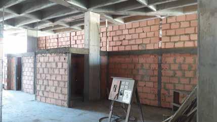 Casting of concrete slabs and columns. Masonry work in N°5 block with glue mortar, columns and beams for double walling and wall plastering .