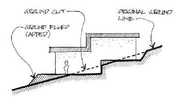 yard through the facades, principally the north facade and lateral facades. the mall.