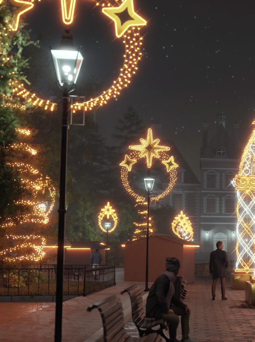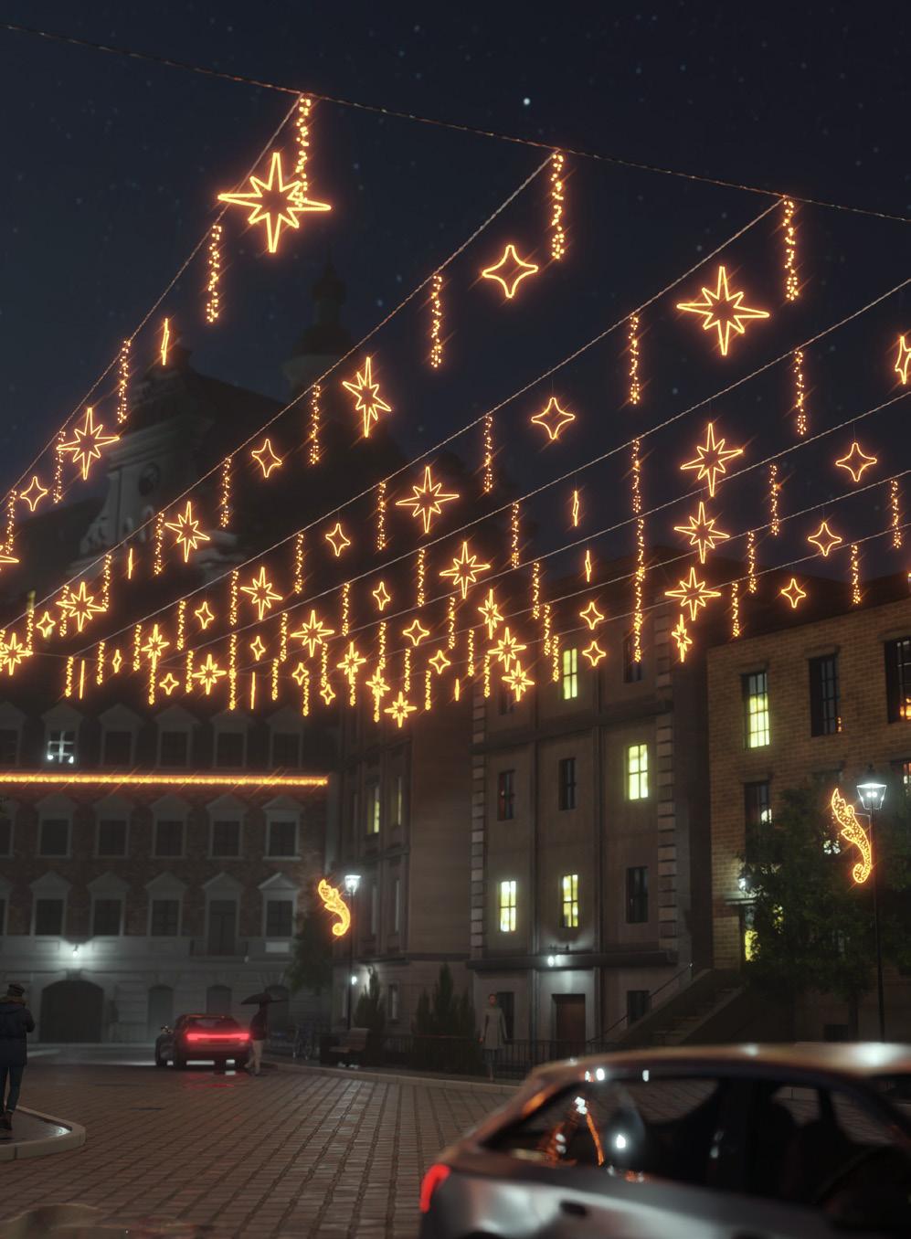 Mit eleganten Konturenbeleuchtungen und stimmungsvollen Lichtakzenten verwandeln Sie Straßen, Plätze und Gebäude in festliche Erlebnisräume. So entsteht eine einladende Atmosphäre, die Passant:innen begeistert und echte Weihnachtsstimmung in die Stadt bringt.