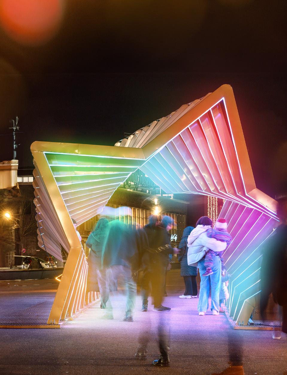 » 1 überlebensgroßes, 14m breites und 8m hohes Eingangsportal zum Weihnachtsmarkt mit mehr als 14.500 LED-Lichtpunkten