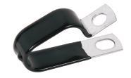 Furnished open to allow the clip to be snapped over wiring or tube, then closed with the bolt at assembly. Contoured to minimize distortion during clamping.